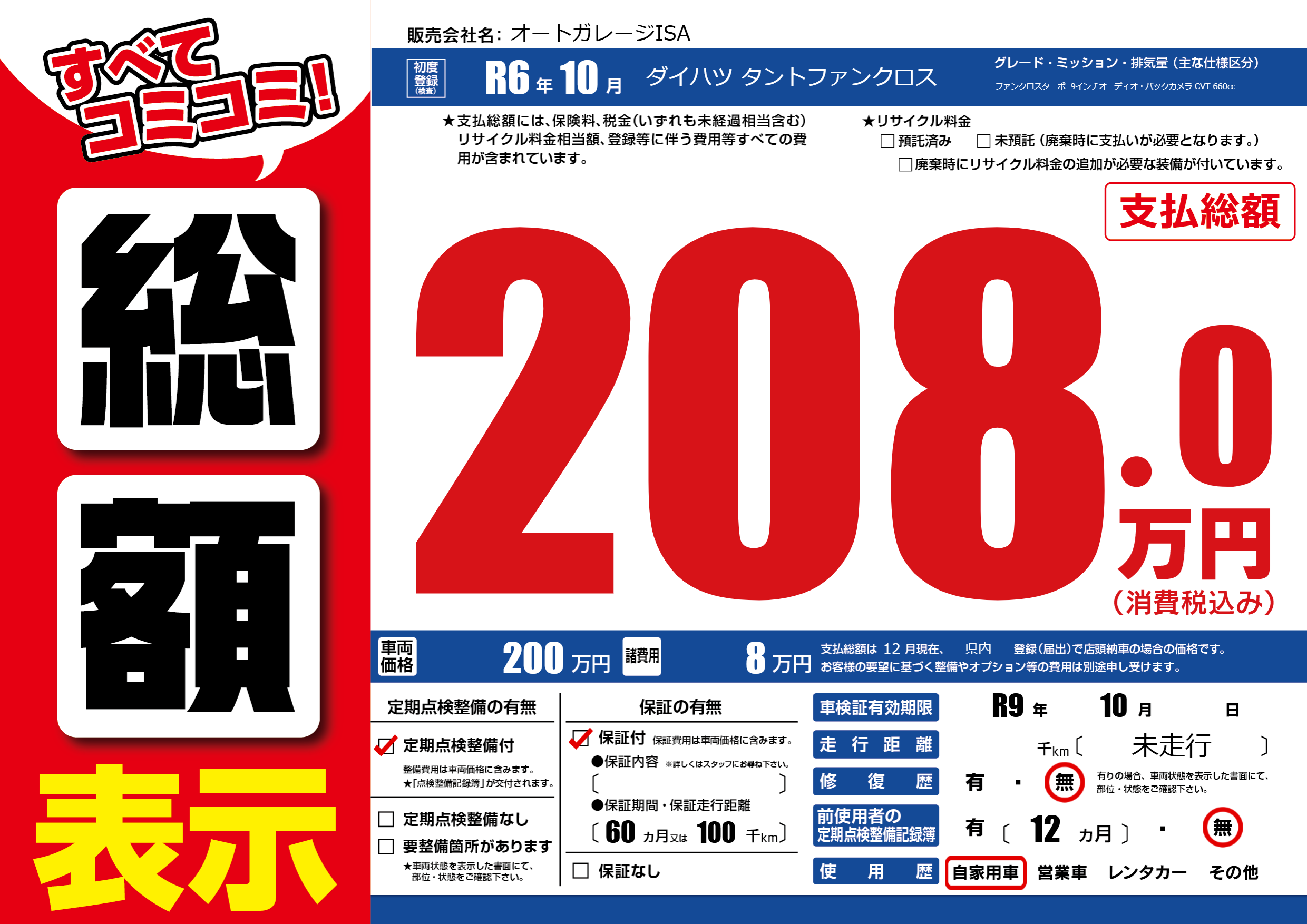 | 走行キロ | - | 初年度登録 | R6年10月 |