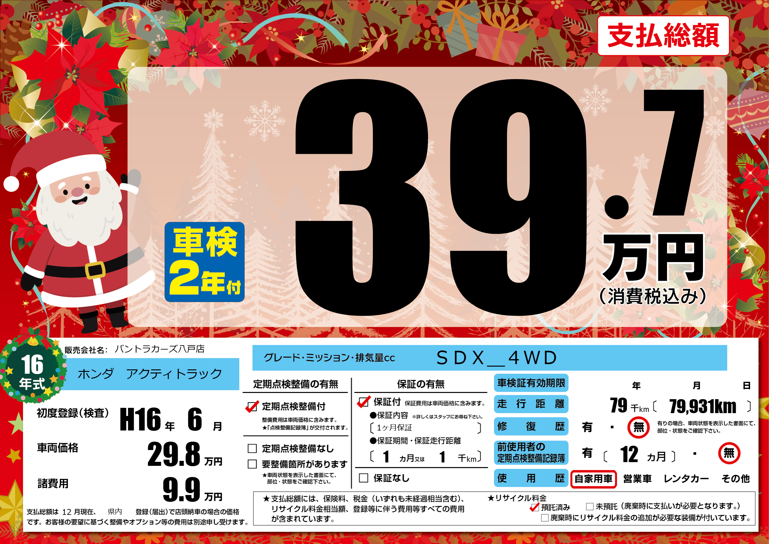 | 車名 | ホンダ アクティトラック | グレード ミッション 排気量 |