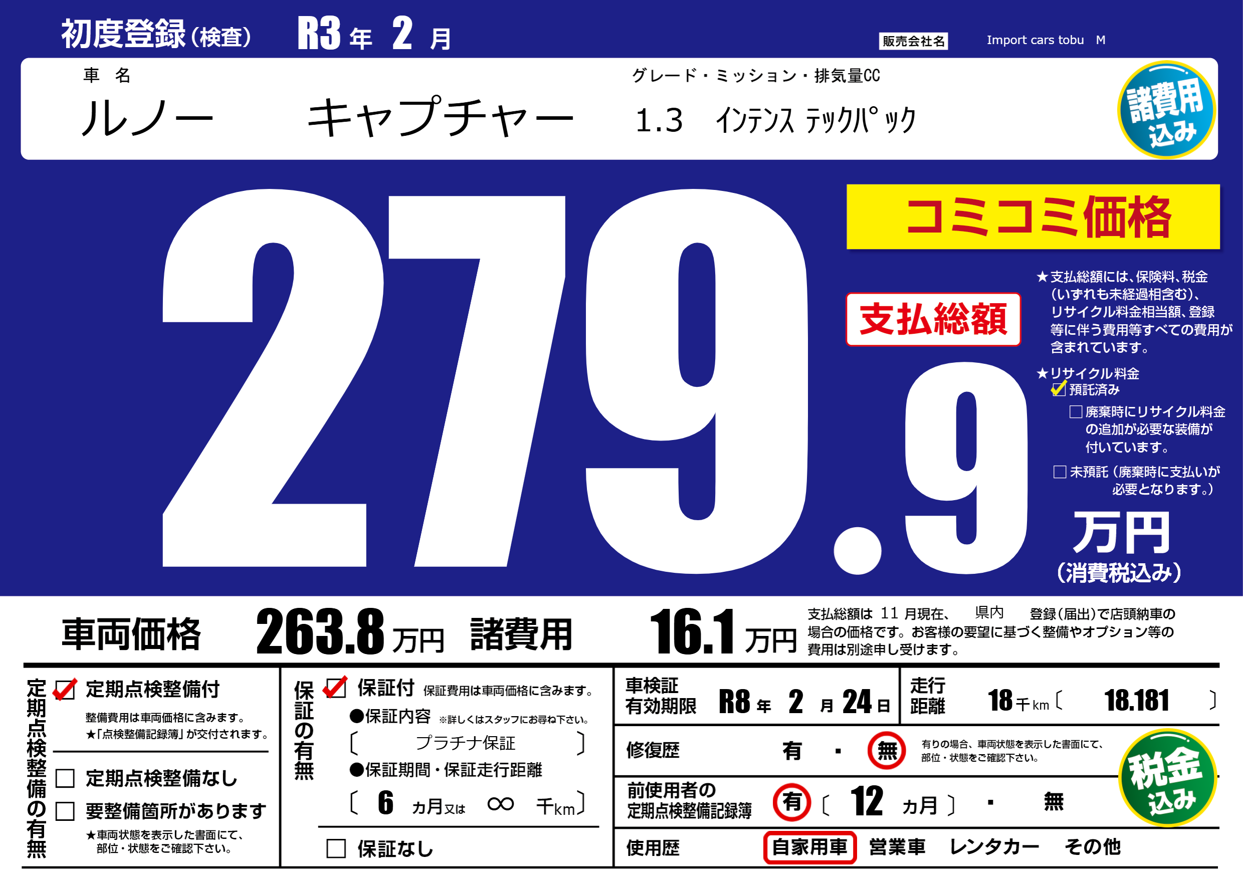 保証付き 保証内容( プラチナ保証) 6ヶ月または(∞)千kmまで |
