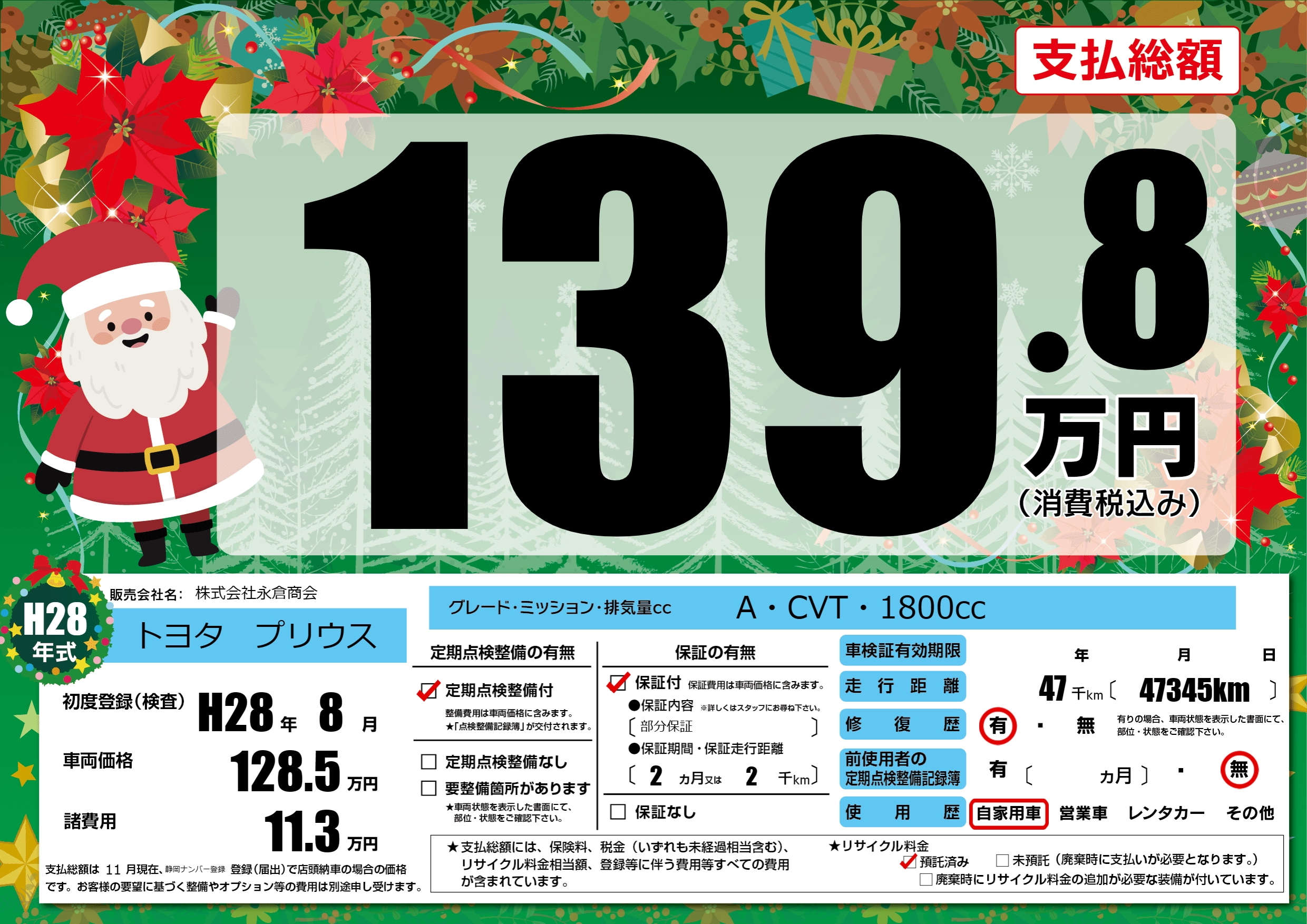| 車名 | トヨタ プリウス | グレード ミッション 排気量 |