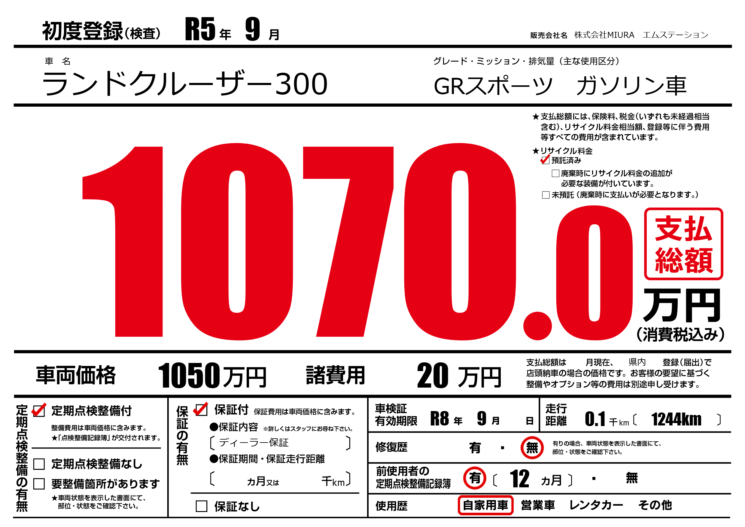 なし | 車検制限 | R8年9月---月 |