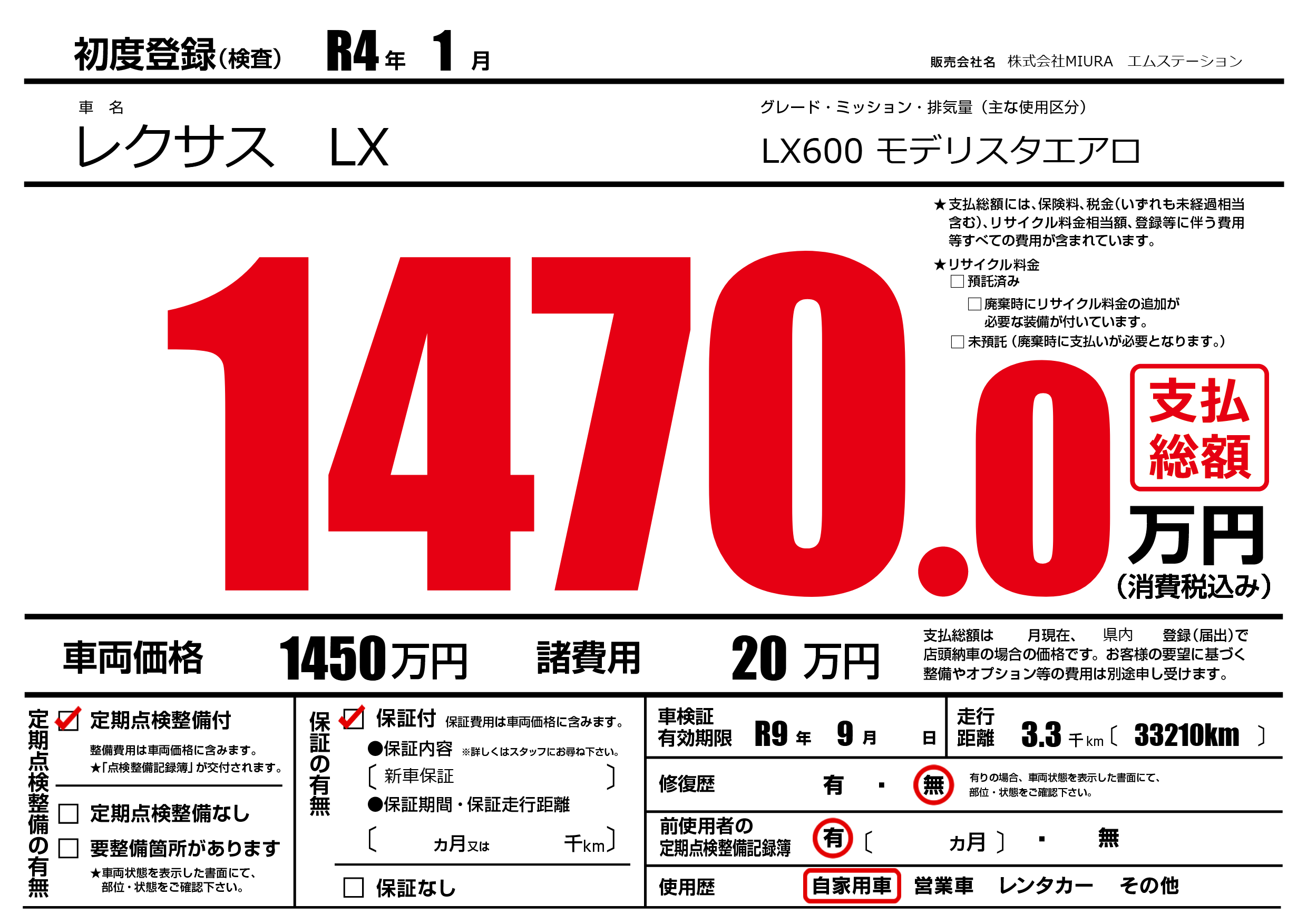 | 車名 | レクサス LX | グレード ミッション 排気量 |