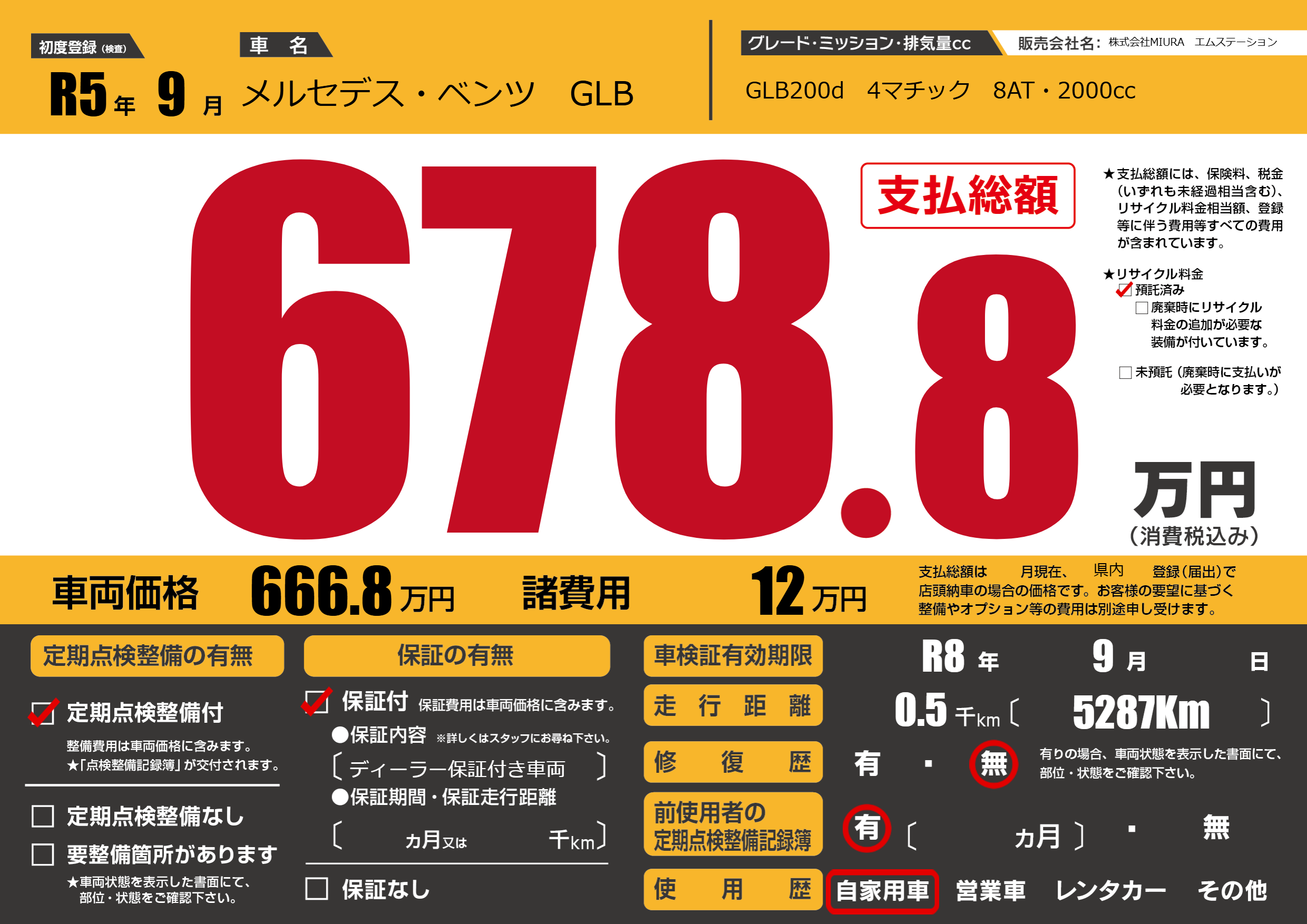 なし | 車検制限 | R8年9月---月 |