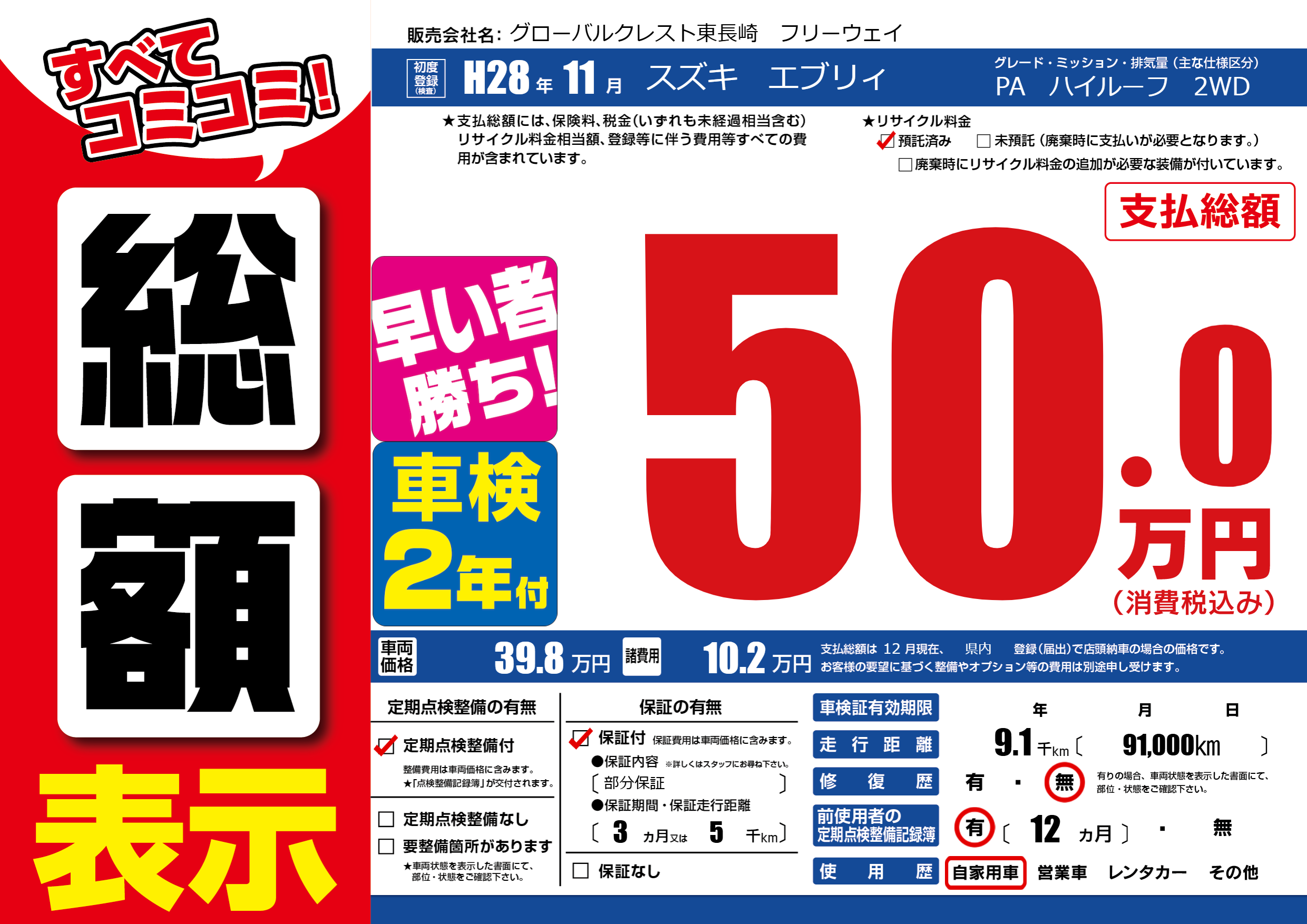 | 車名 | スズキ エブリィ | グレード ミッション 排気量 |