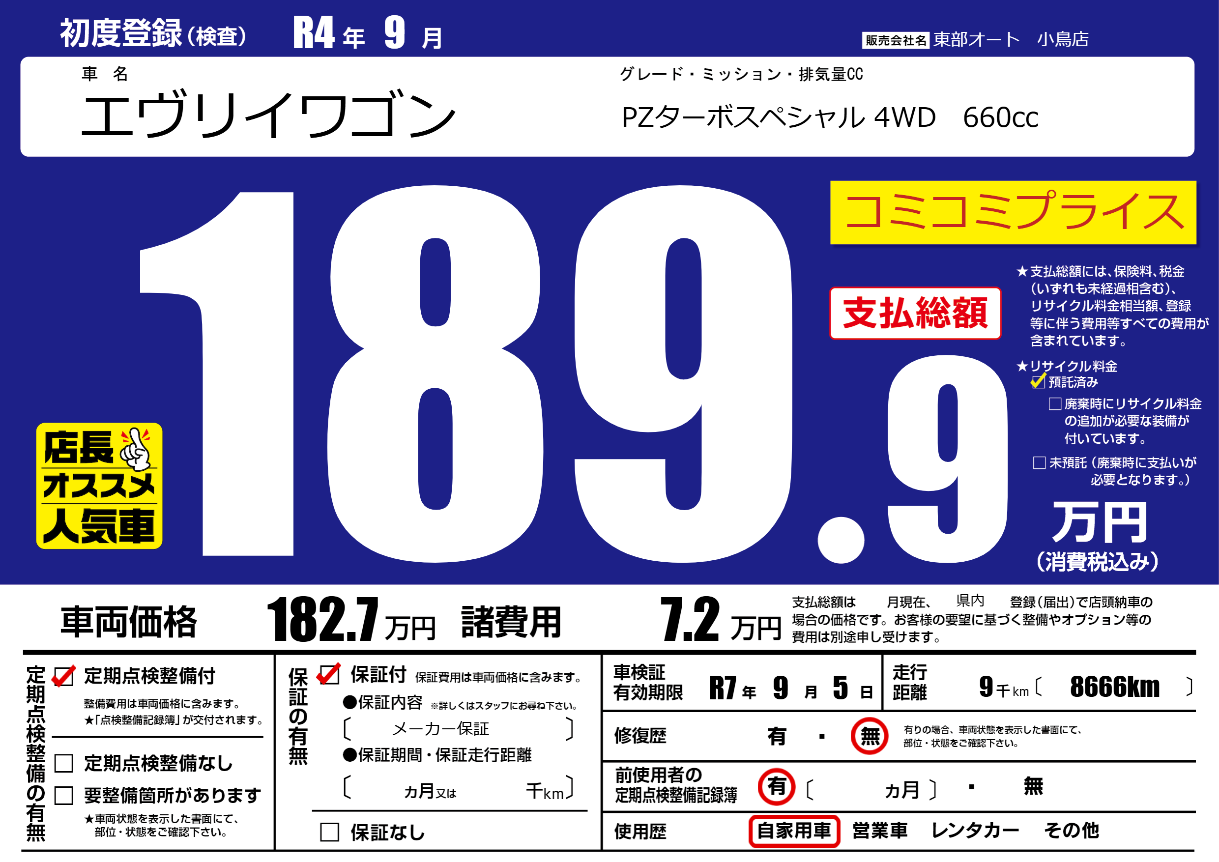 | 車検制限 | R7年 9月 5日 | ||