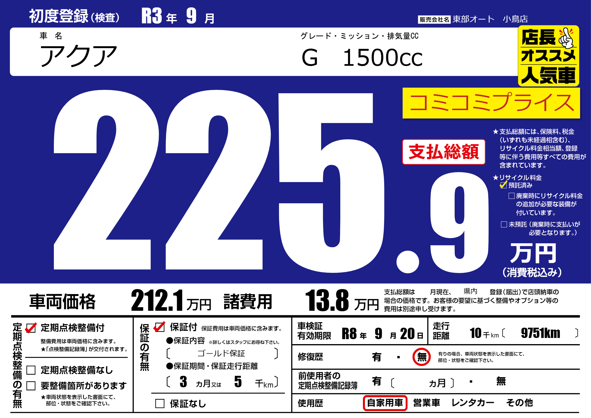 | 初年度登録 | R3年9月 | ||