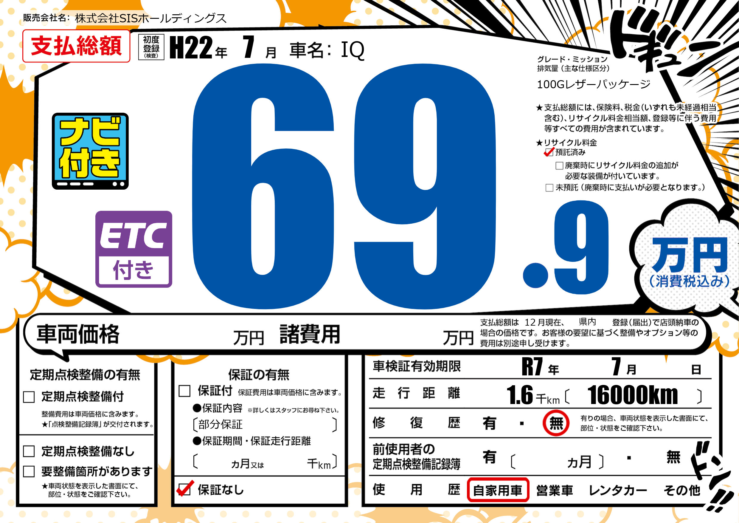 | 車検制限 | R7年 7月 - 日 | ||