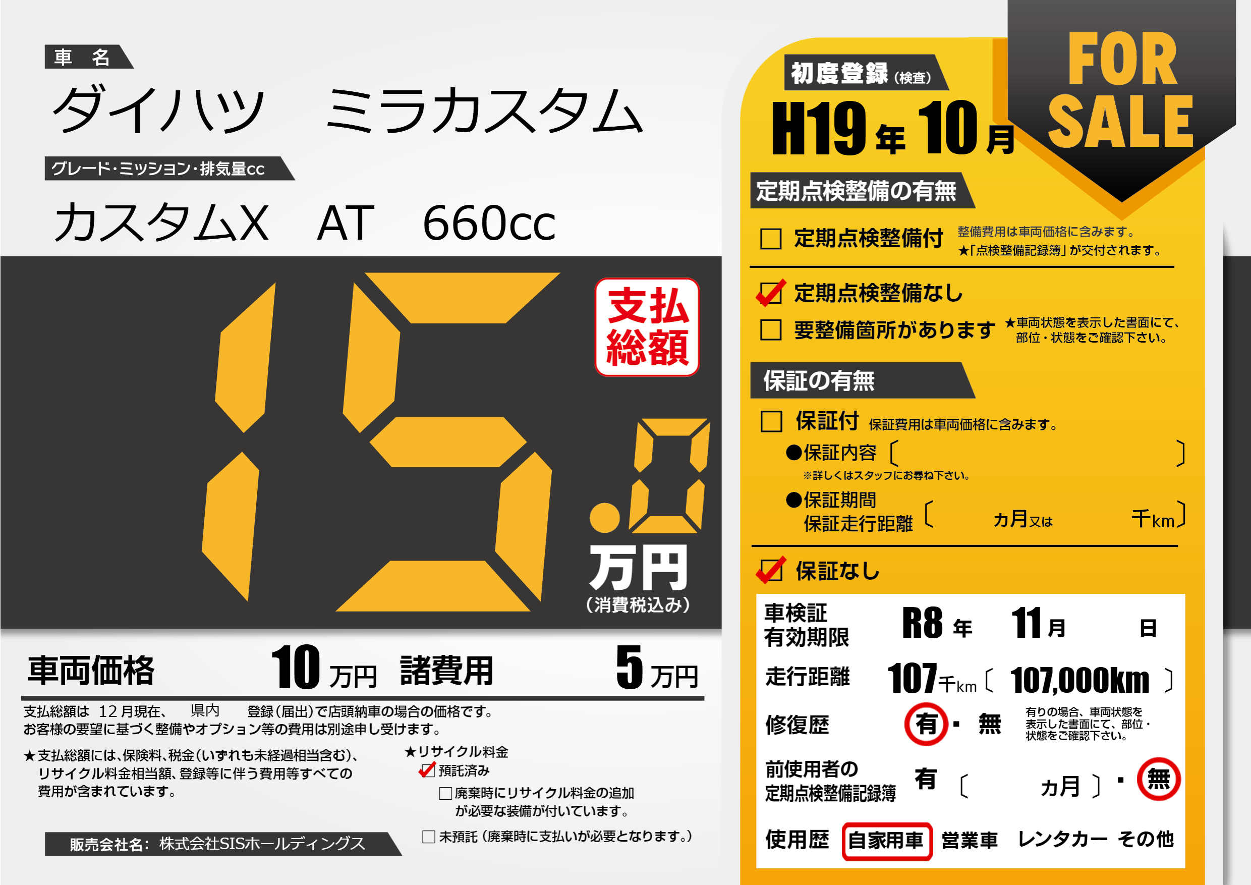 | 定期点検整備 | 定期点検整備なし | ||