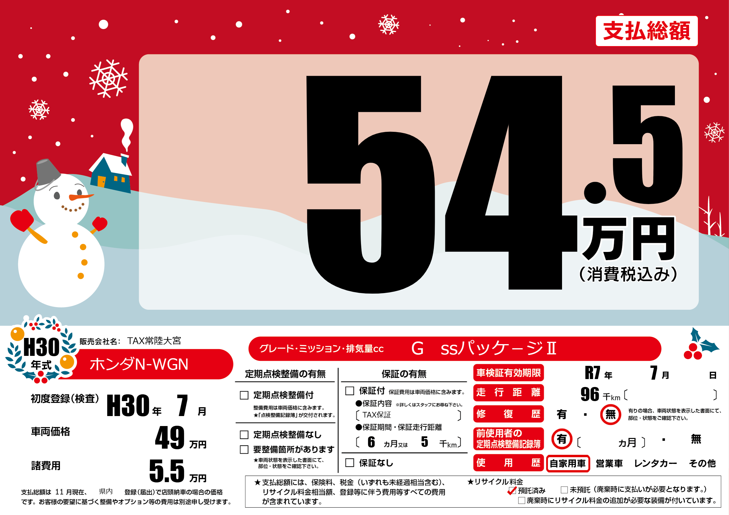 | 車名 | ホンダN-WGN | グレード ミッション 排気量 |