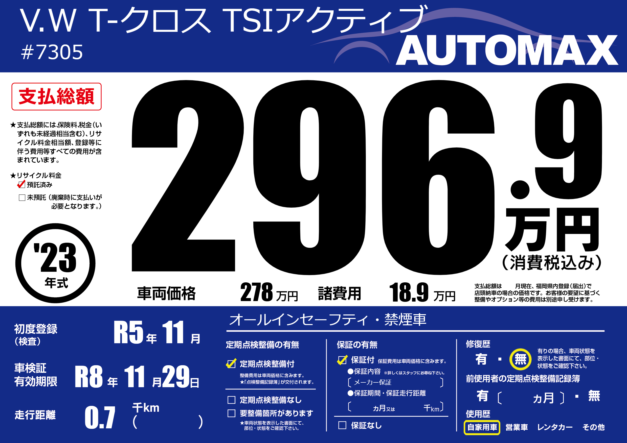 | 走行キロ | - | 初年度登録 | R5年11月 |