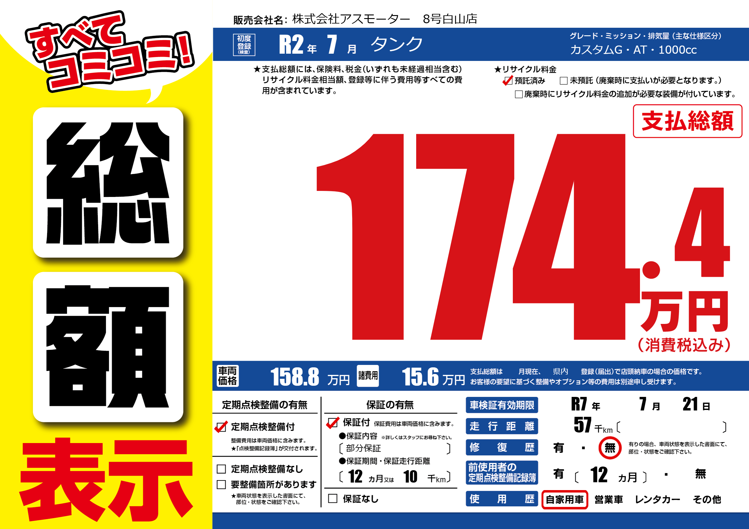 | 走行キロ | 5.7万km | 初年度登録 | R2年7月 |