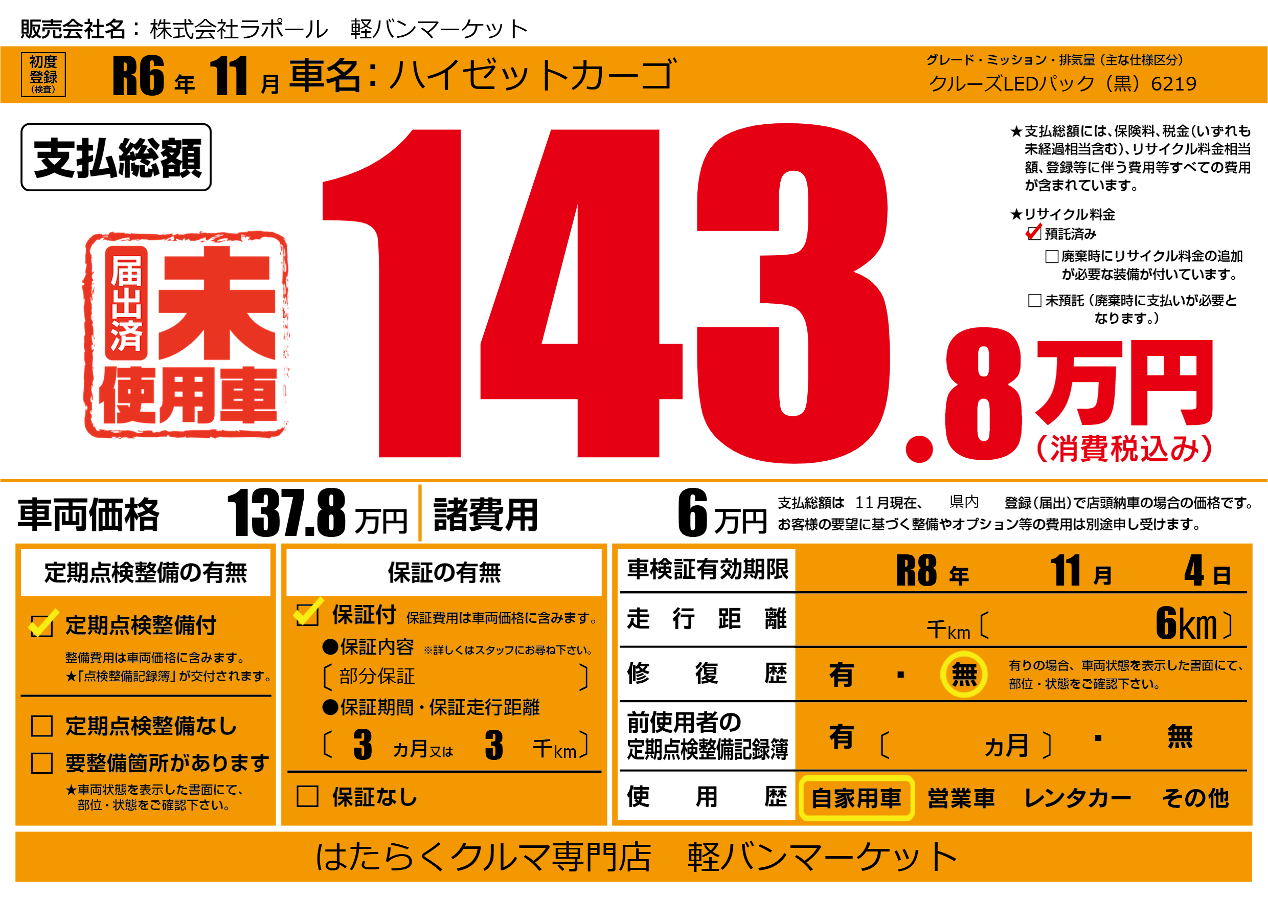| 走行キロ | - | 初年度登録 | R6年11月 |