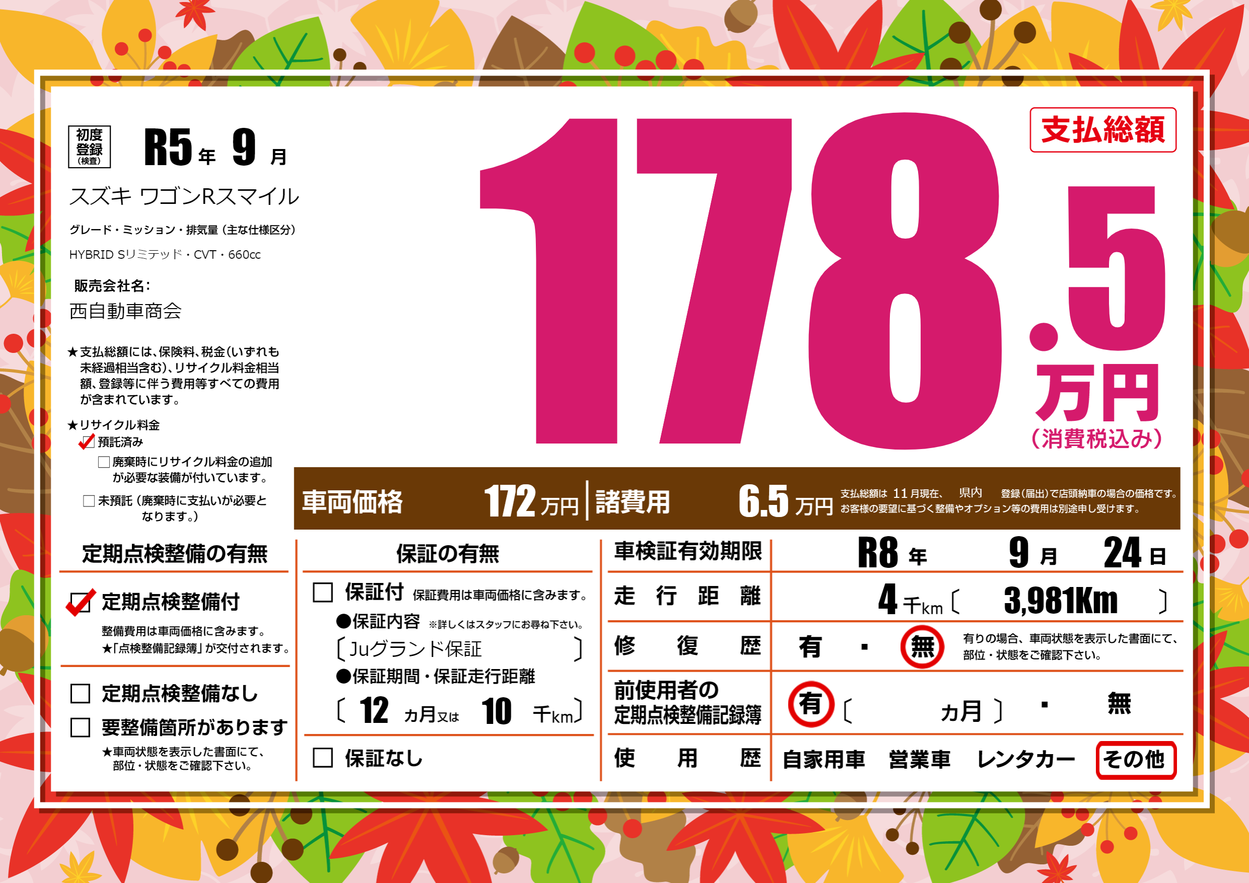 なし | 車検制限 | R8年9月24月 |