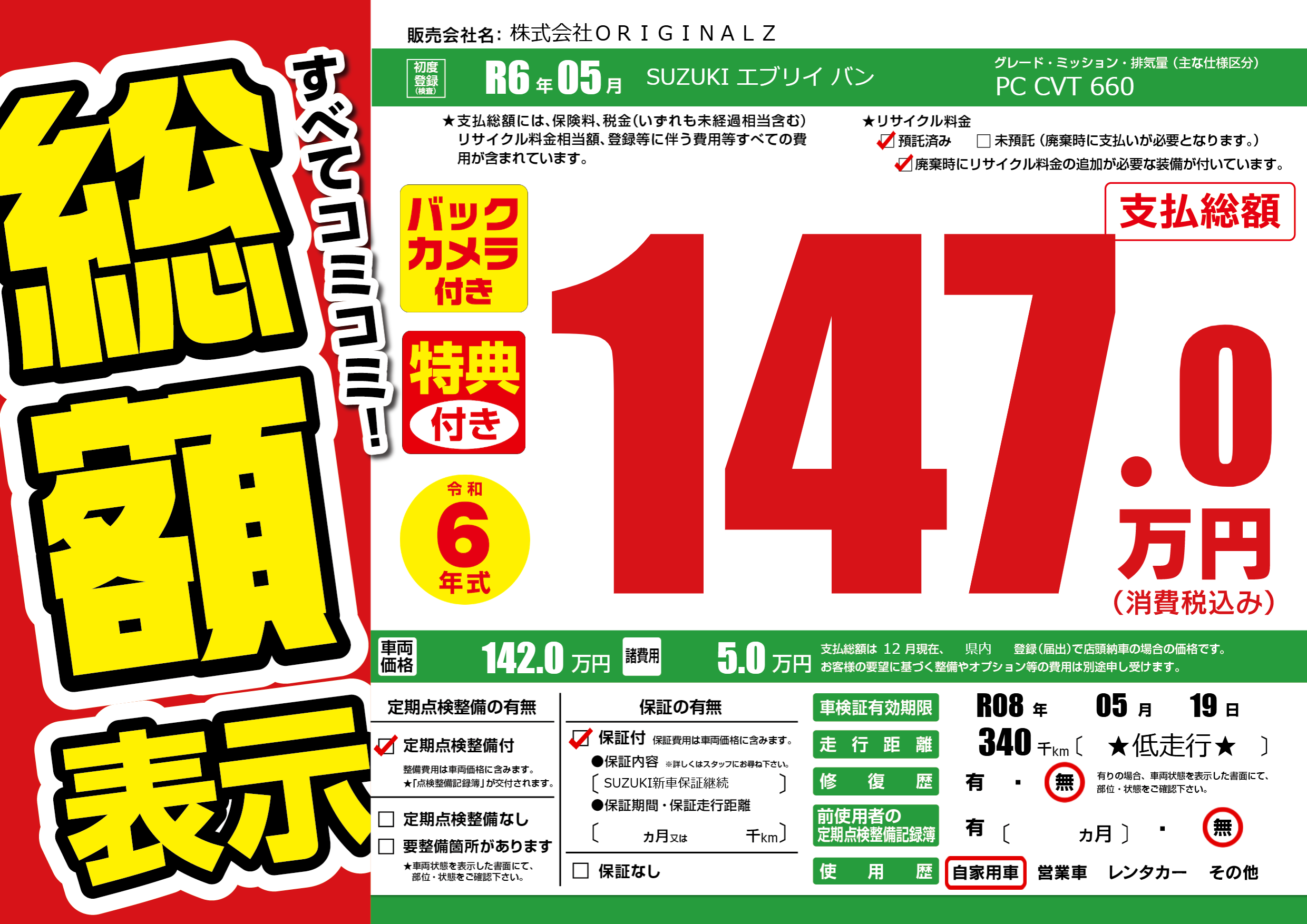 | 車検制限 | R08年 05月 19日 | ||
