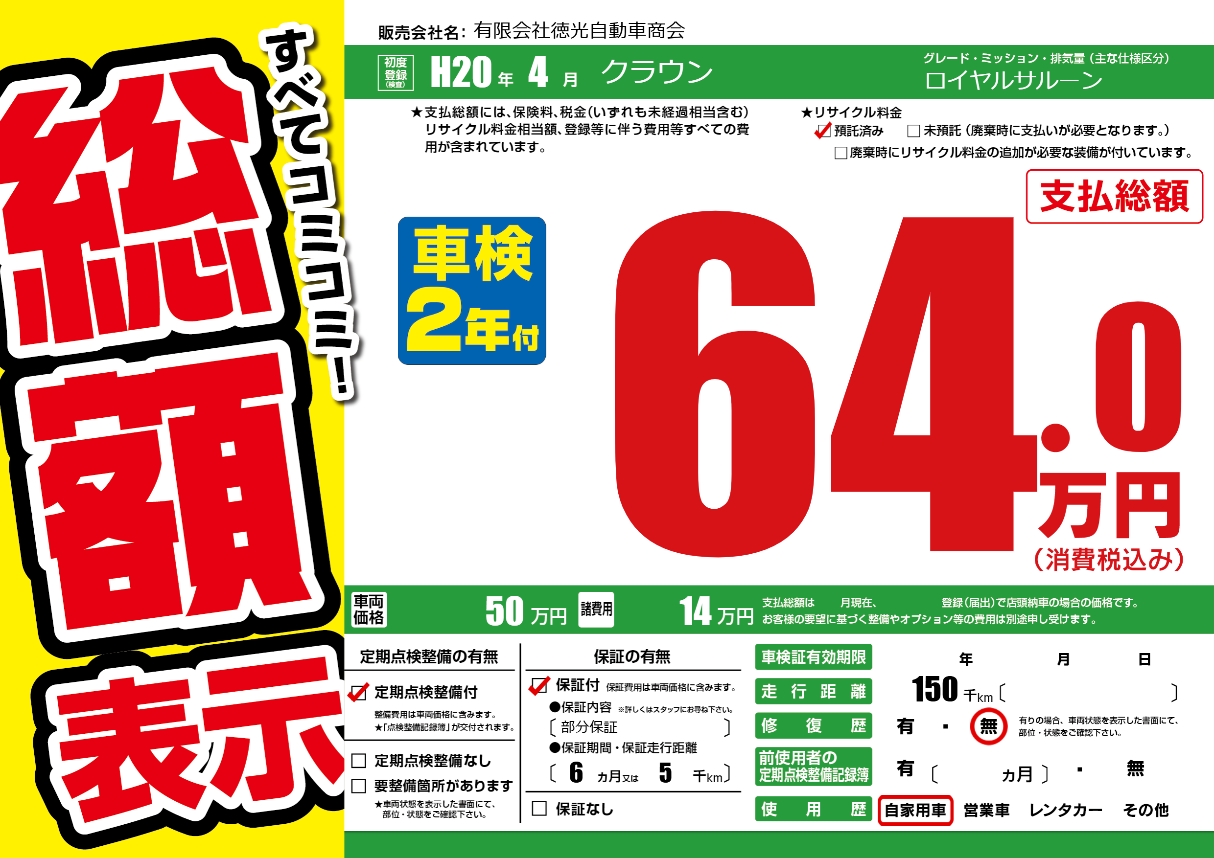 | 車名 | クラウン | グレード ミッション 排気量 |