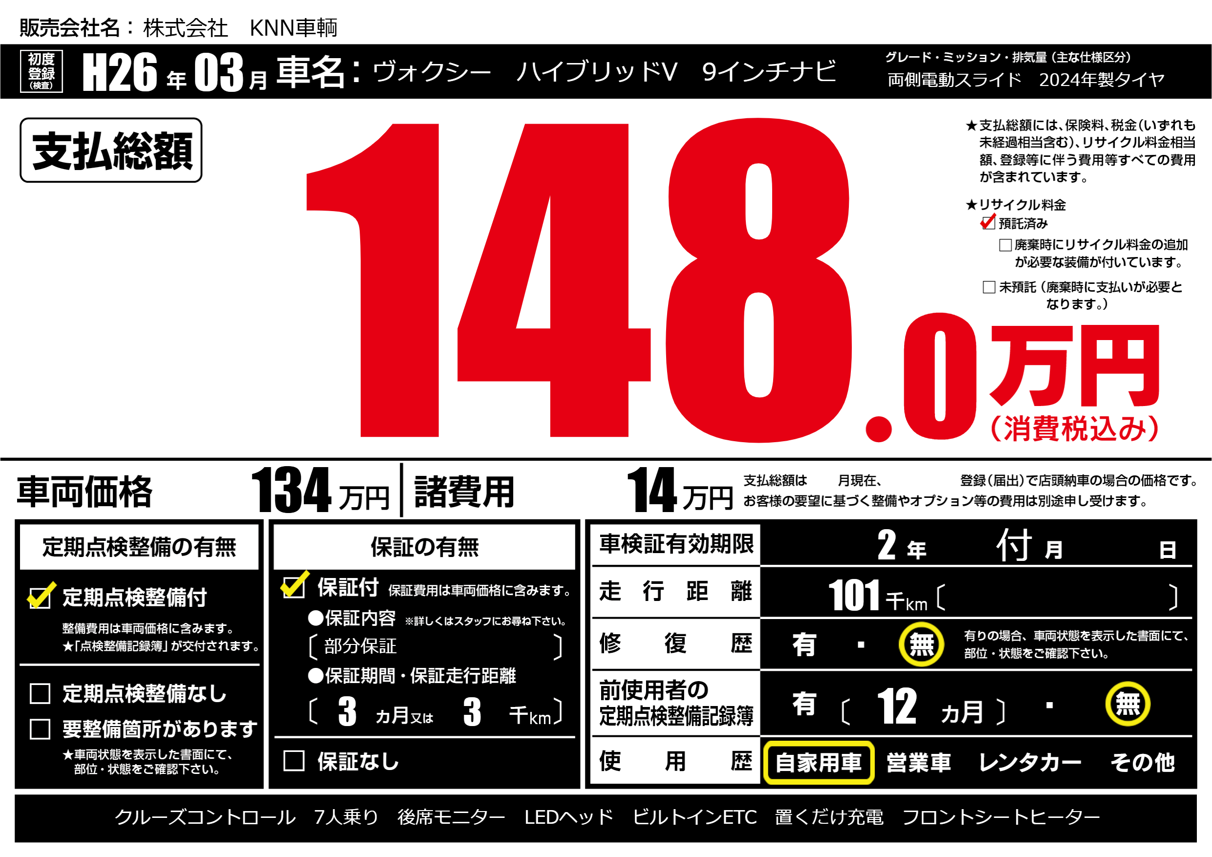 なし | 車検制限 | 2年付月---月 |