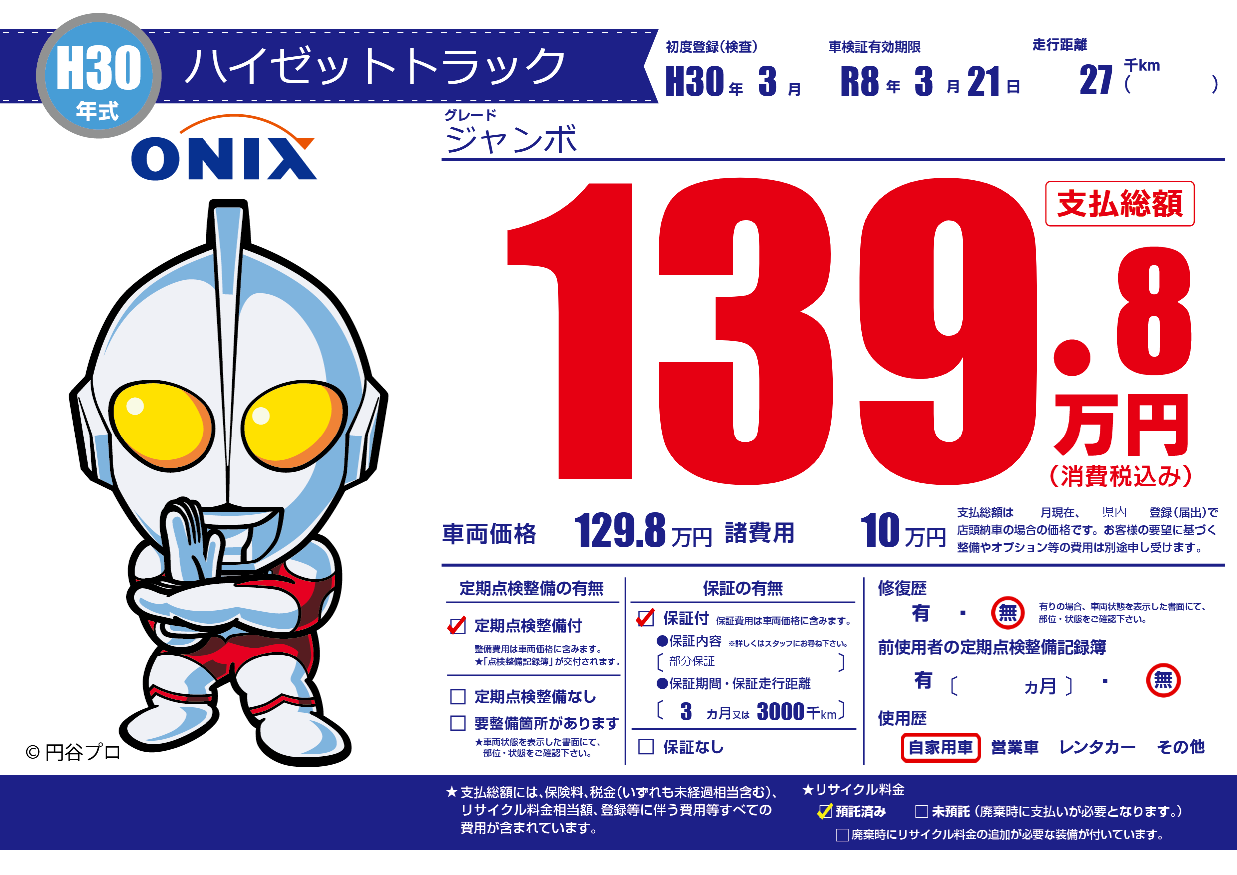 保証付き 保証内容(部分保証) 3ヶ月または(3000)千kmまで |