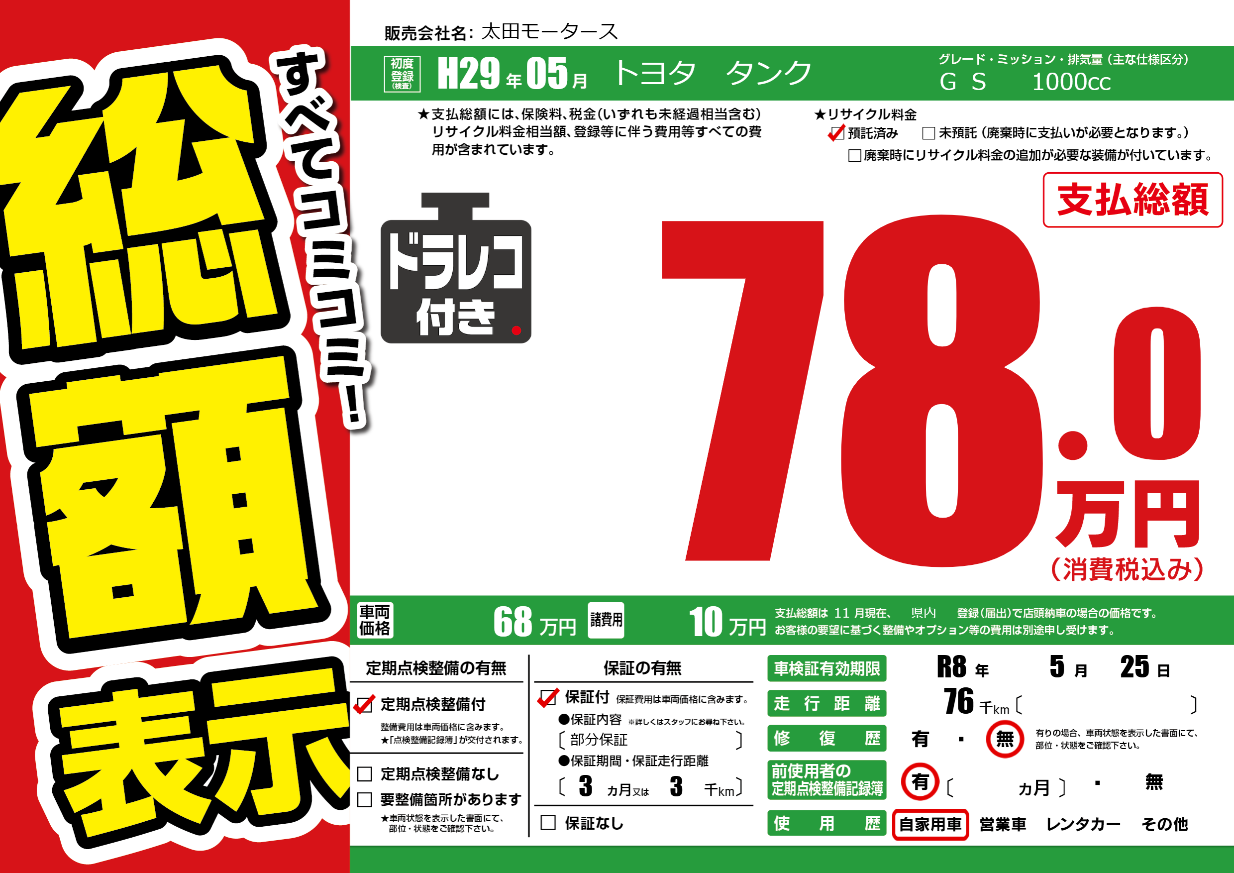 | 車検制限 | R8年 5月 25日 | ||