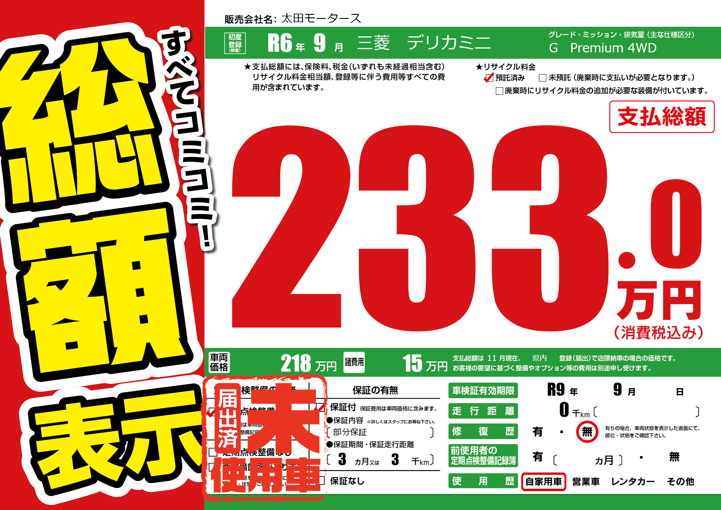 | 走行キロ | - | 初年度登録 | R6年9月 |