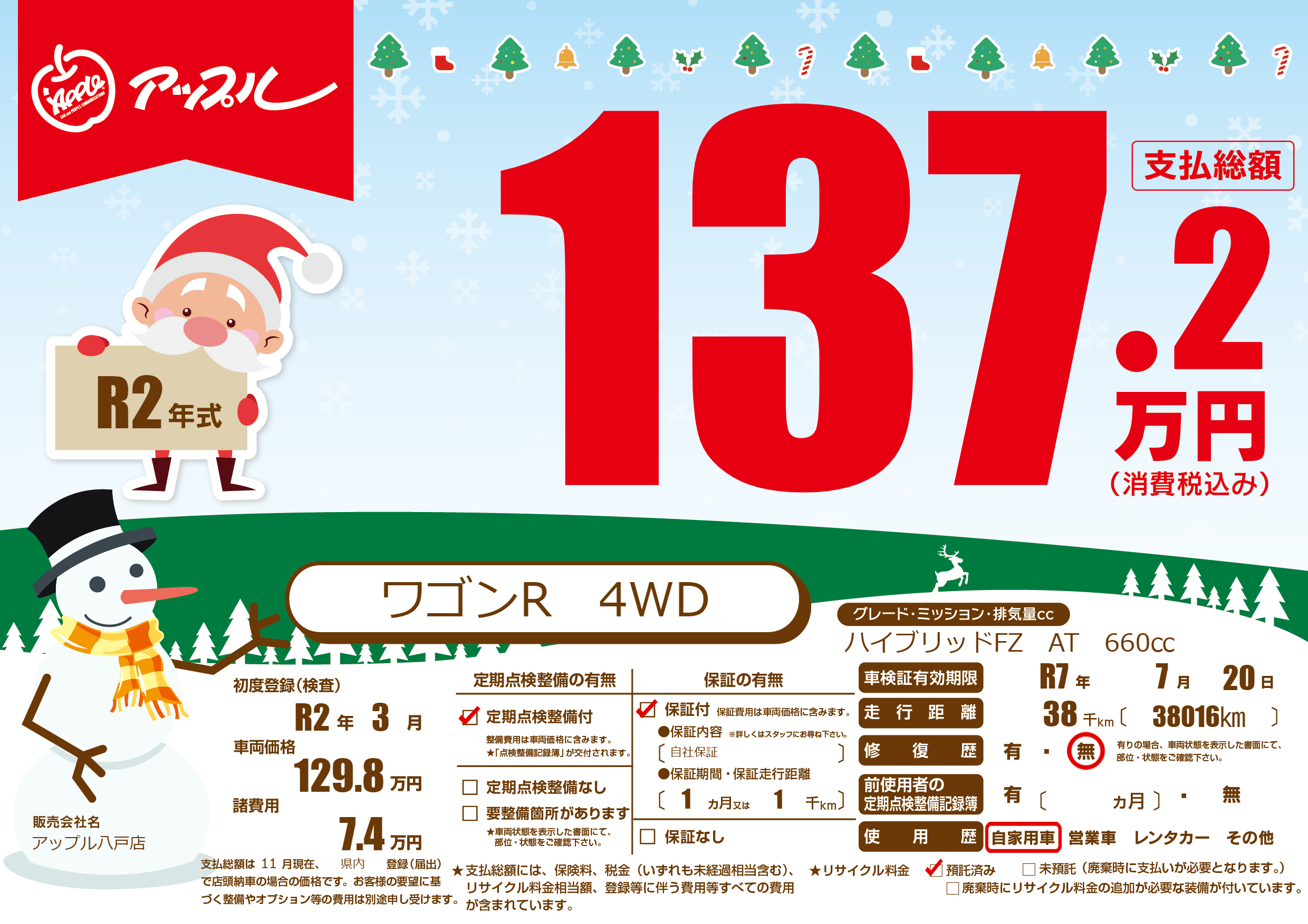 | 車名 | ワゴンR 4WD | グレード ミッション 排気量 |
