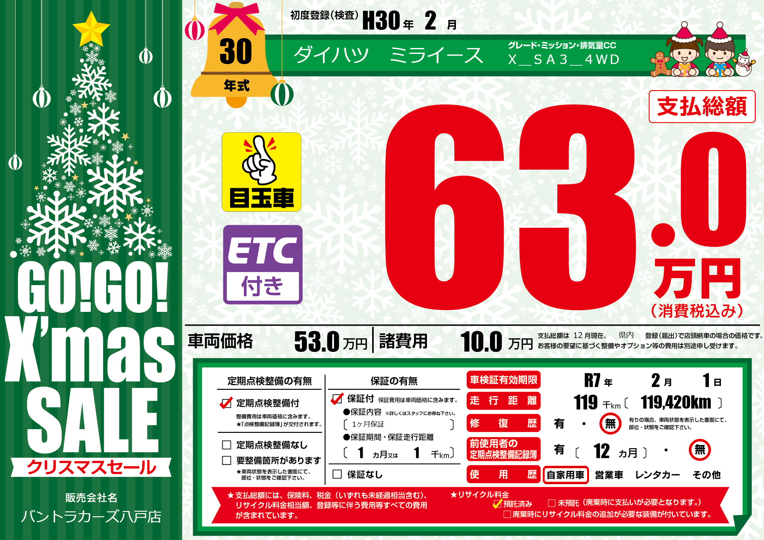 | 走行キロ | 11.9万km | 初年度登録 | H30年2月 |