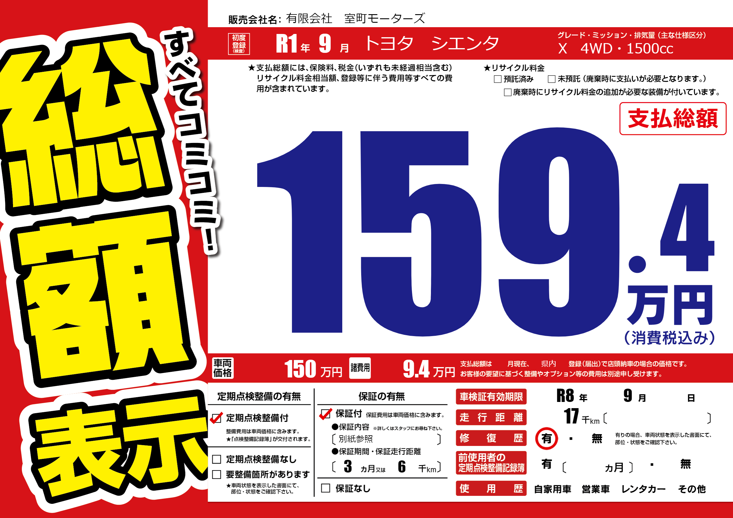なし | 車検制限 | R8年9月---月 |