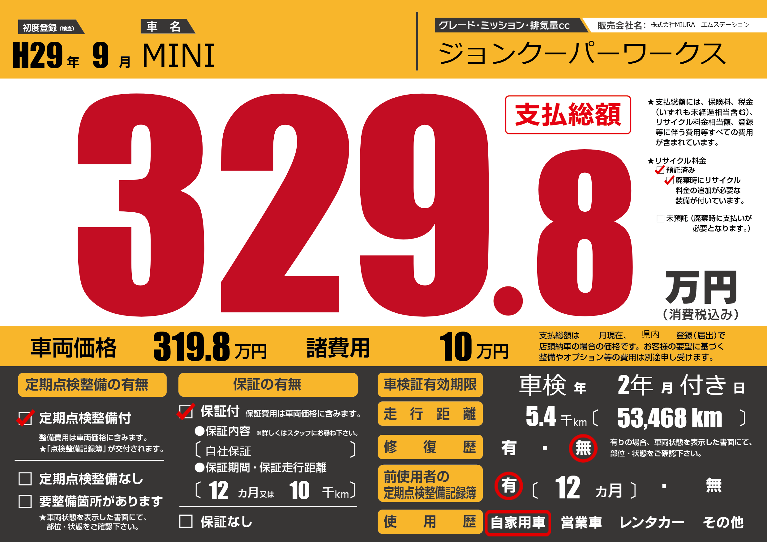 保証付き 保証内容(自社保証) 12ヶ月または10千km |