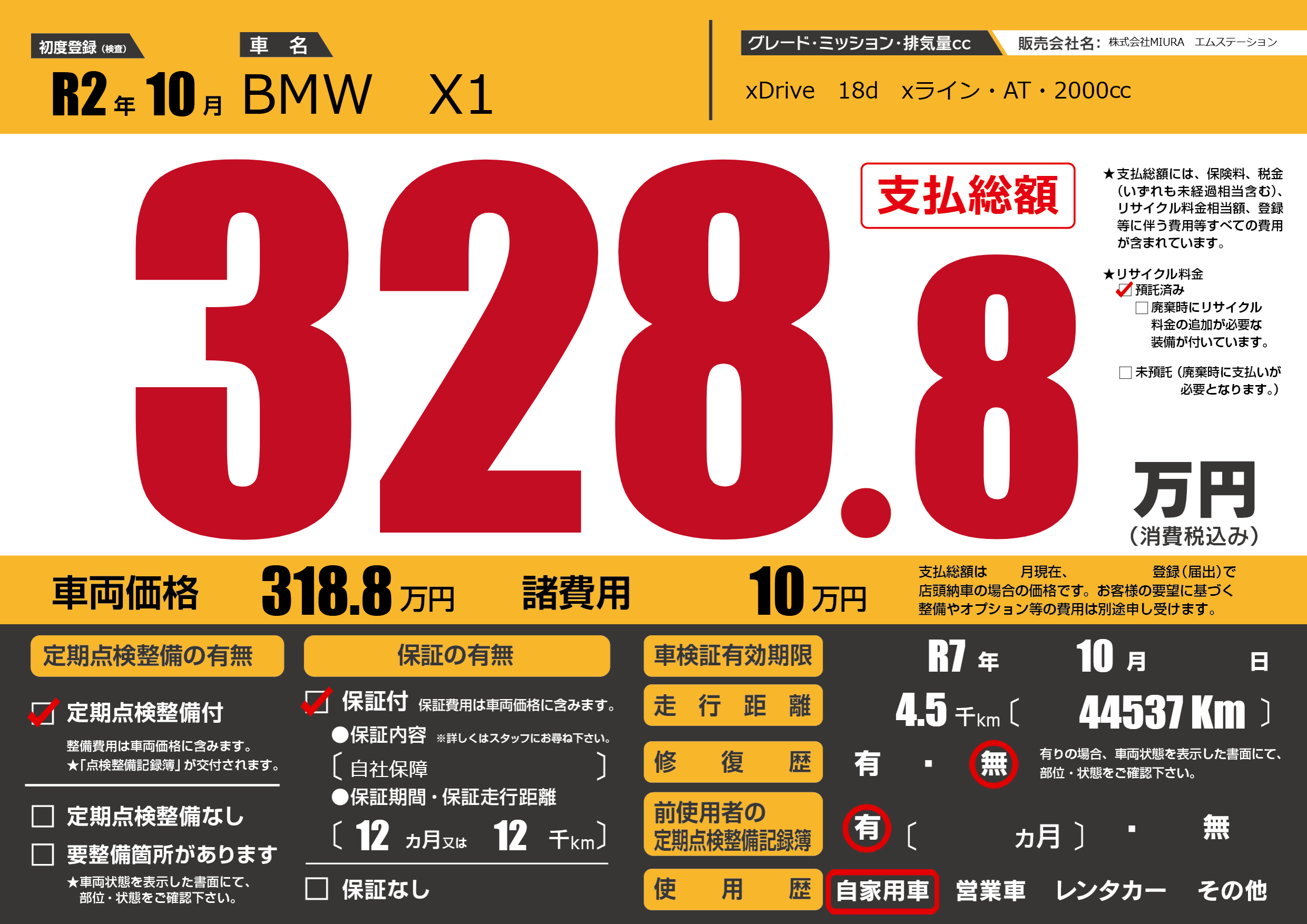 | 車検制限 | R7年 10月 - 日 | ||