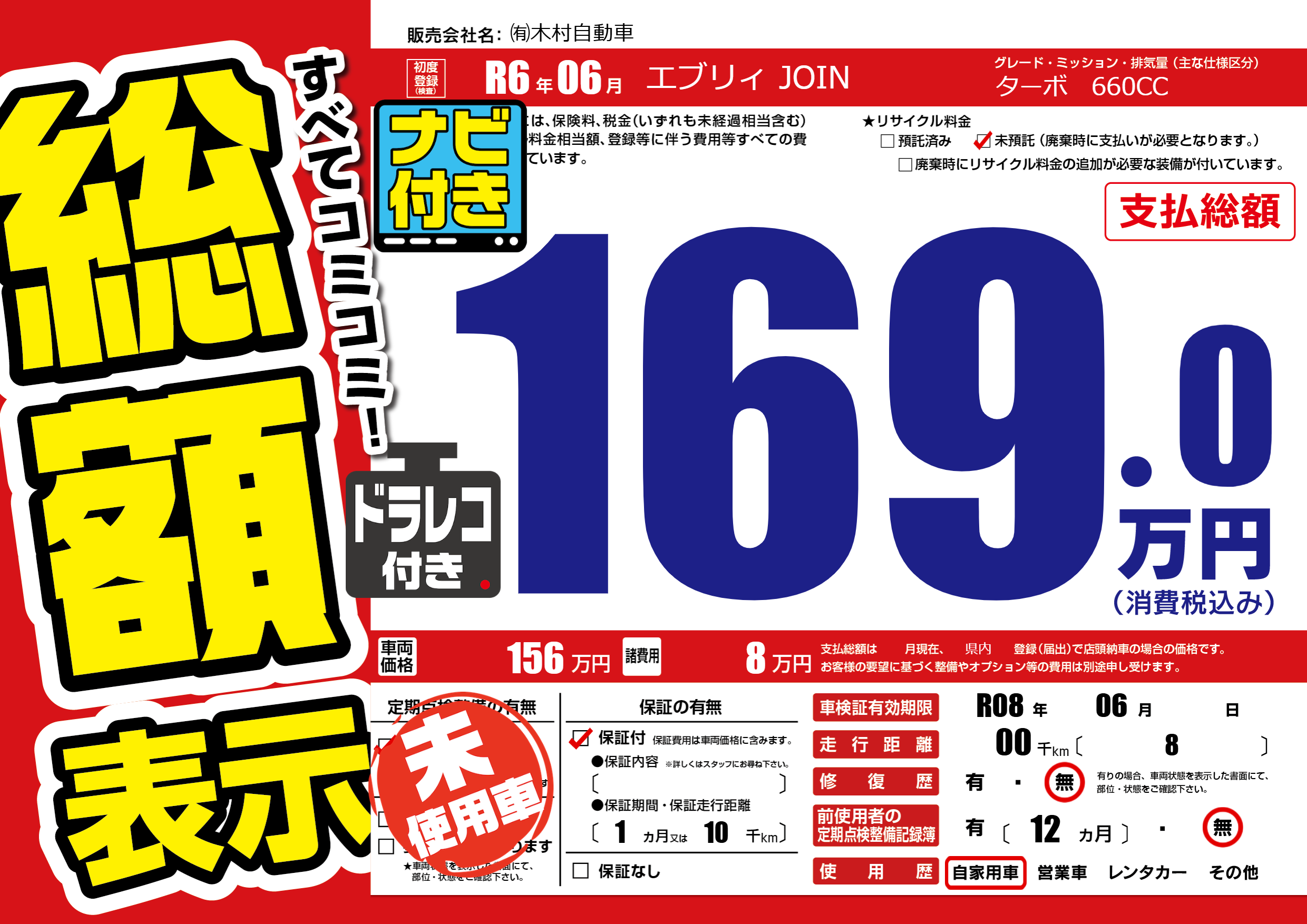 | 車検制限 | R08年 06月 - 日 | ||
