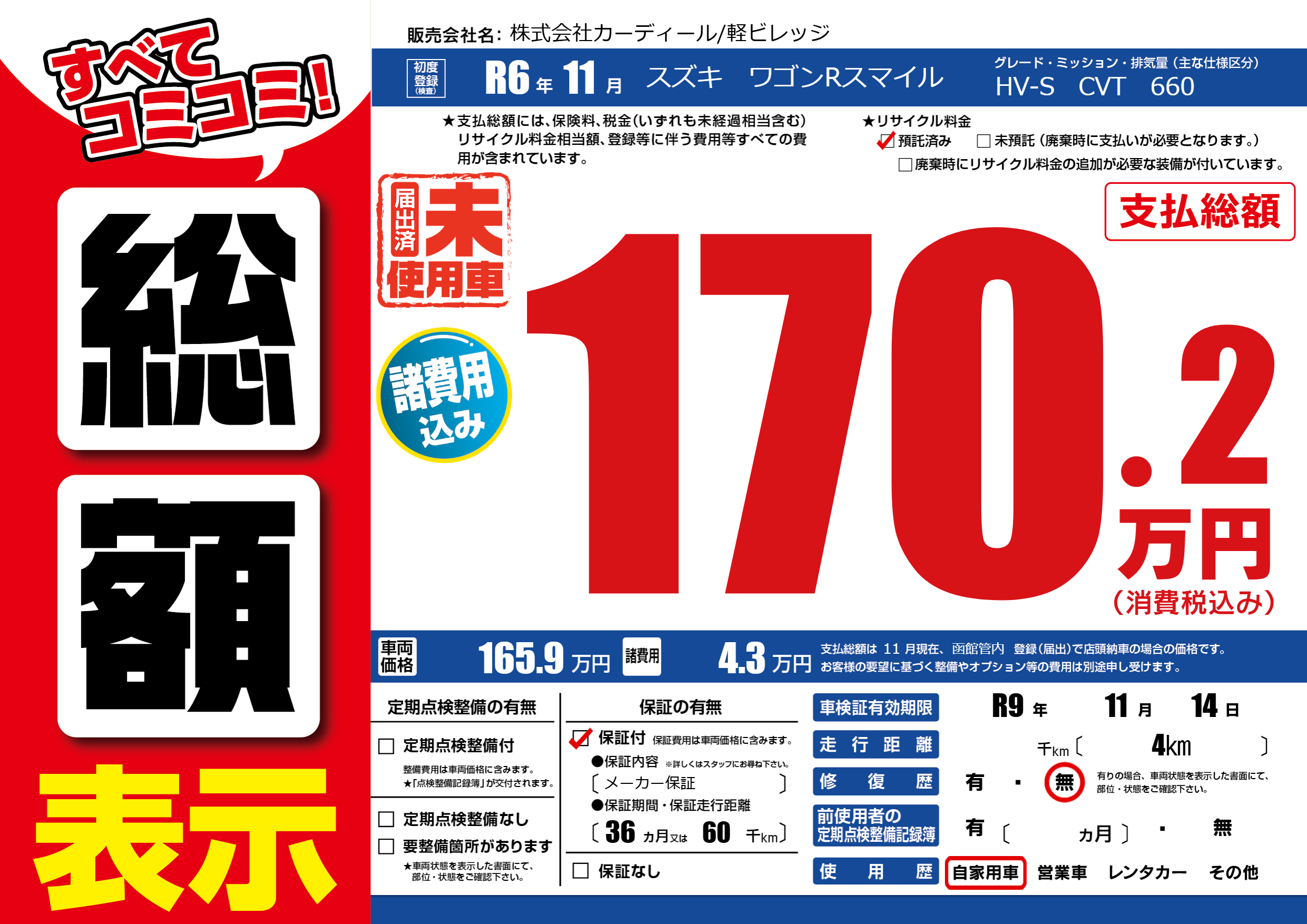 | 走行キロ | - | 初年度登録 | R6年11月 |