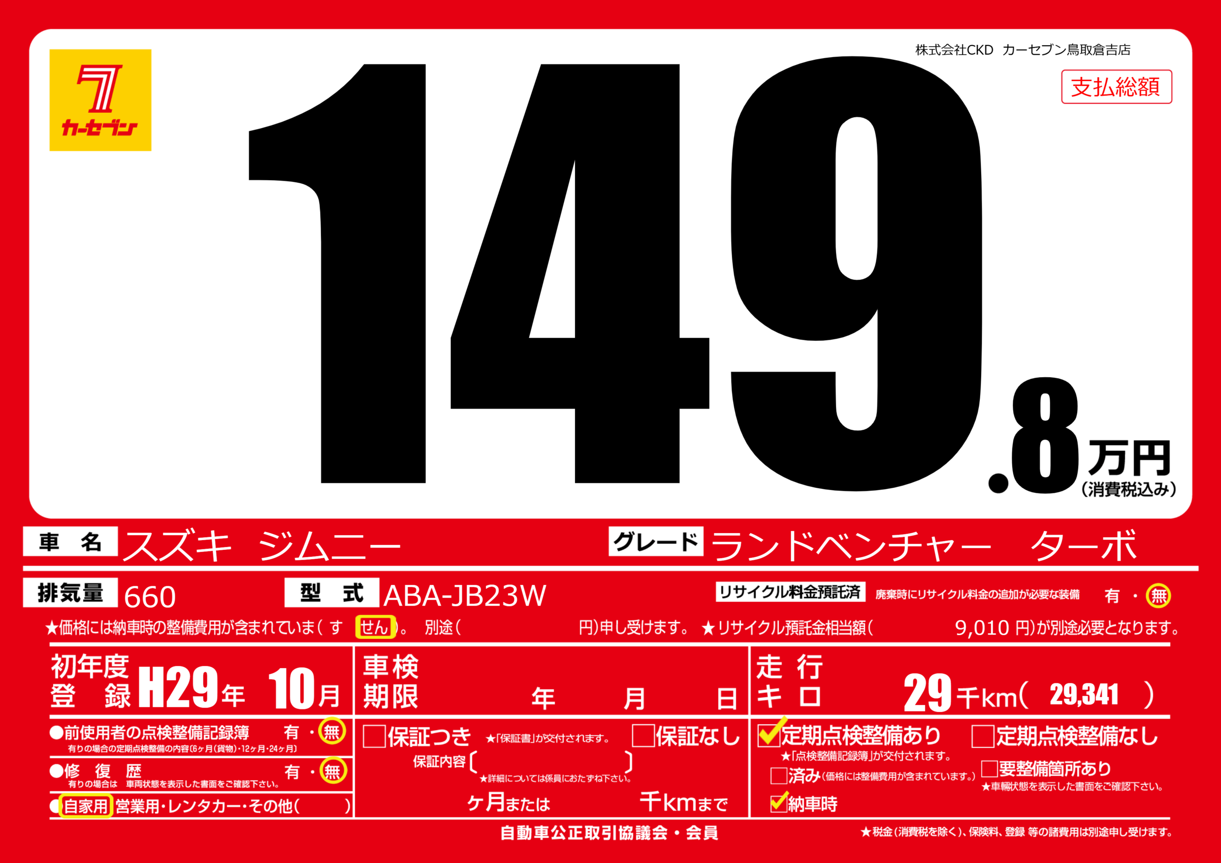 | 定期点検整備 | 定期点検整備あり 納車時あり | ||