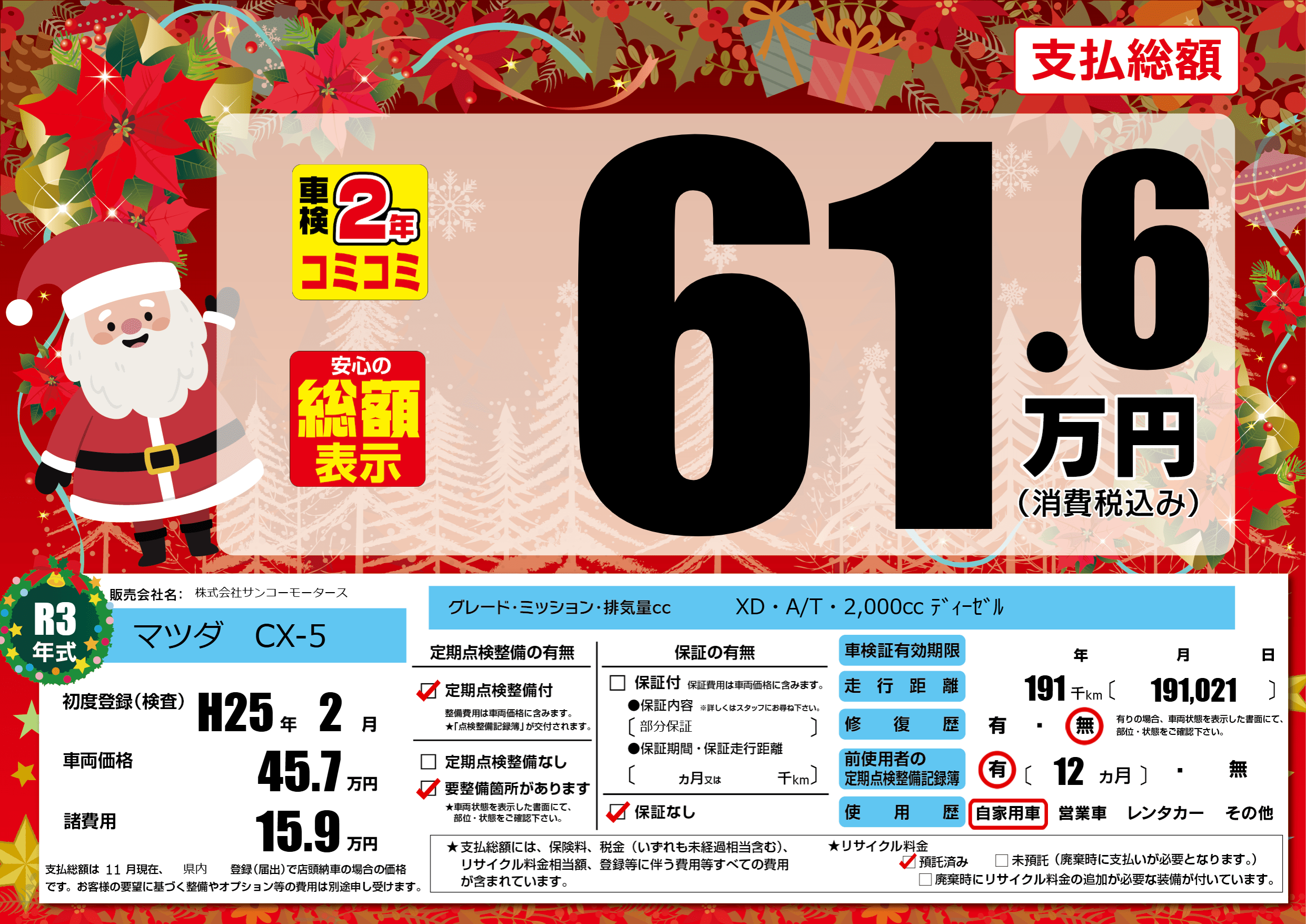 | 定期点検整備 | 定期点検整備あり 要整備箇所あり | ||