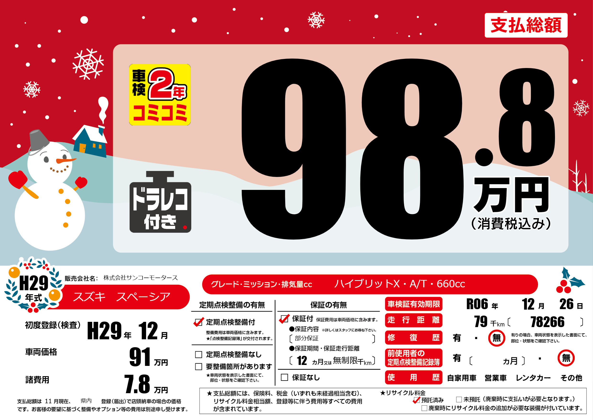 | 走行キロ | 7.9万km | 初年度登録 | H29年12月 |