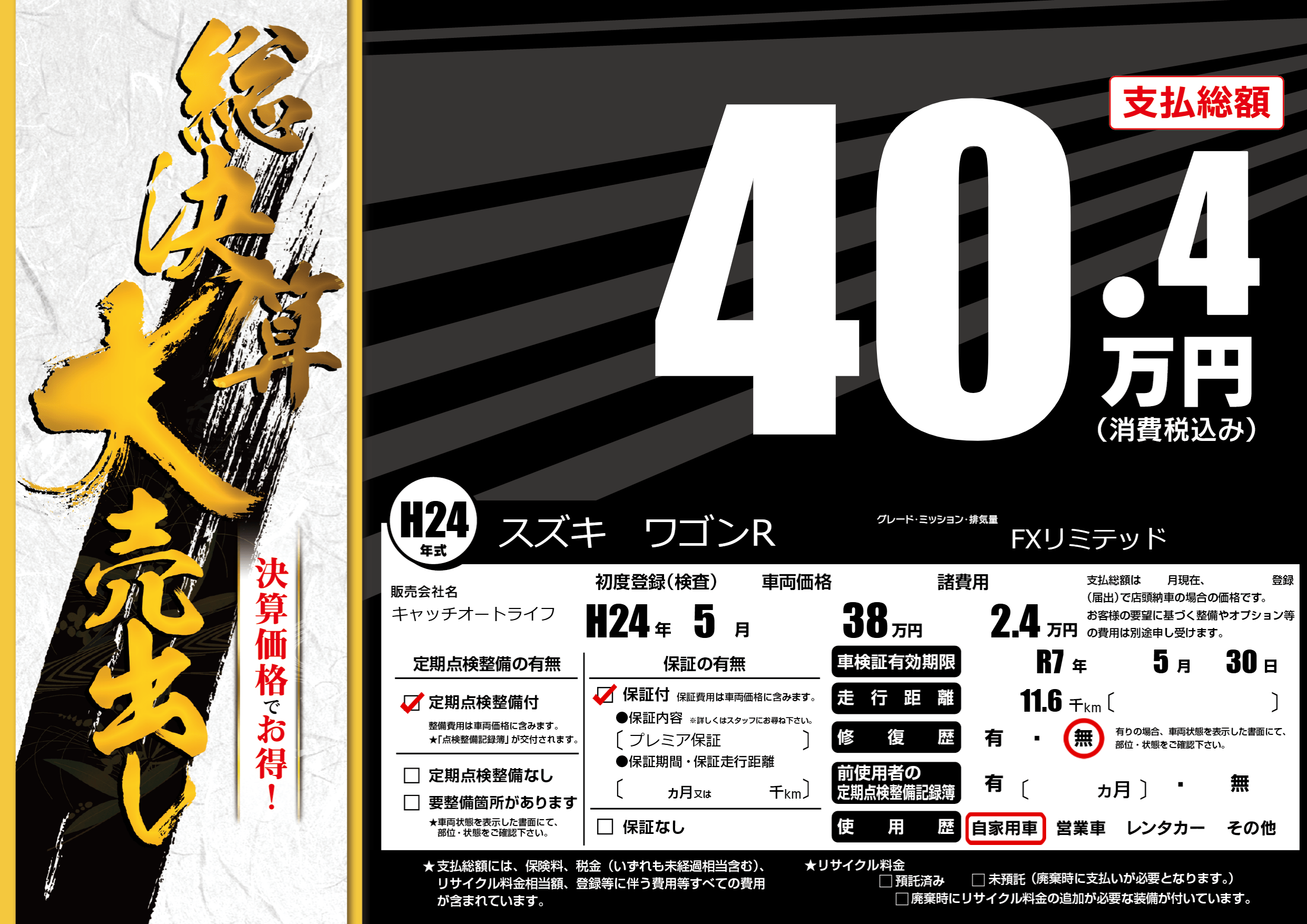 | 車名 | スズキ ワゴンR | グレード ミッション 排気量 |