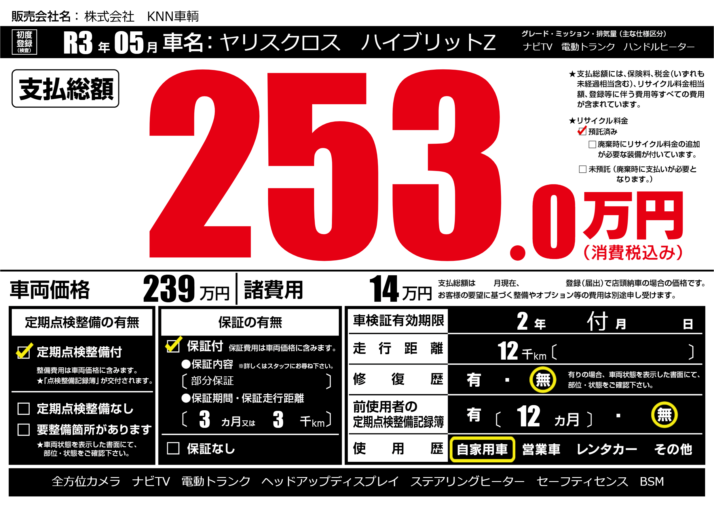 | 定期点検整備 | 定期点検整備あり | ||