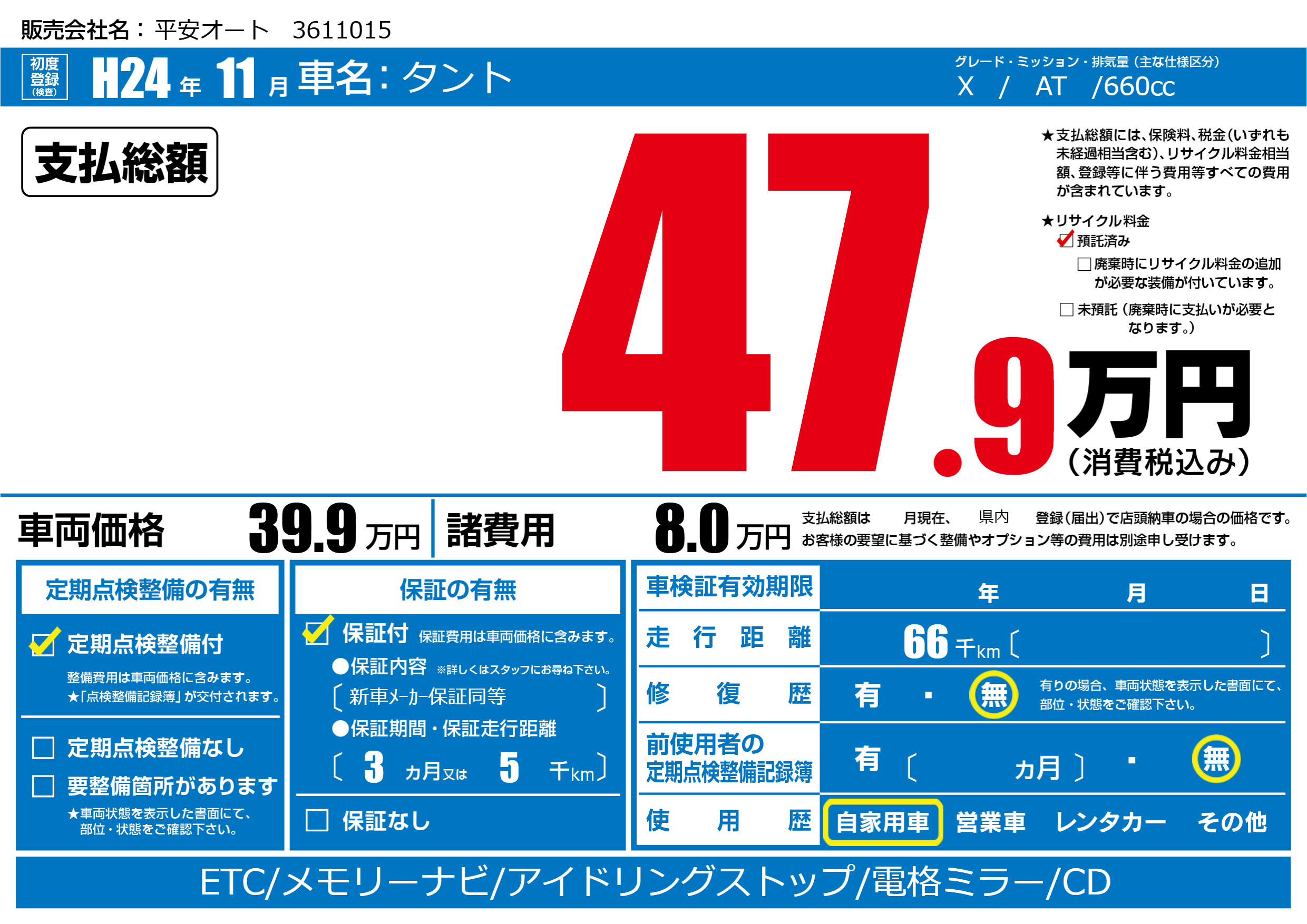 | 定期点検整備 | 定期点検整備あり | ||