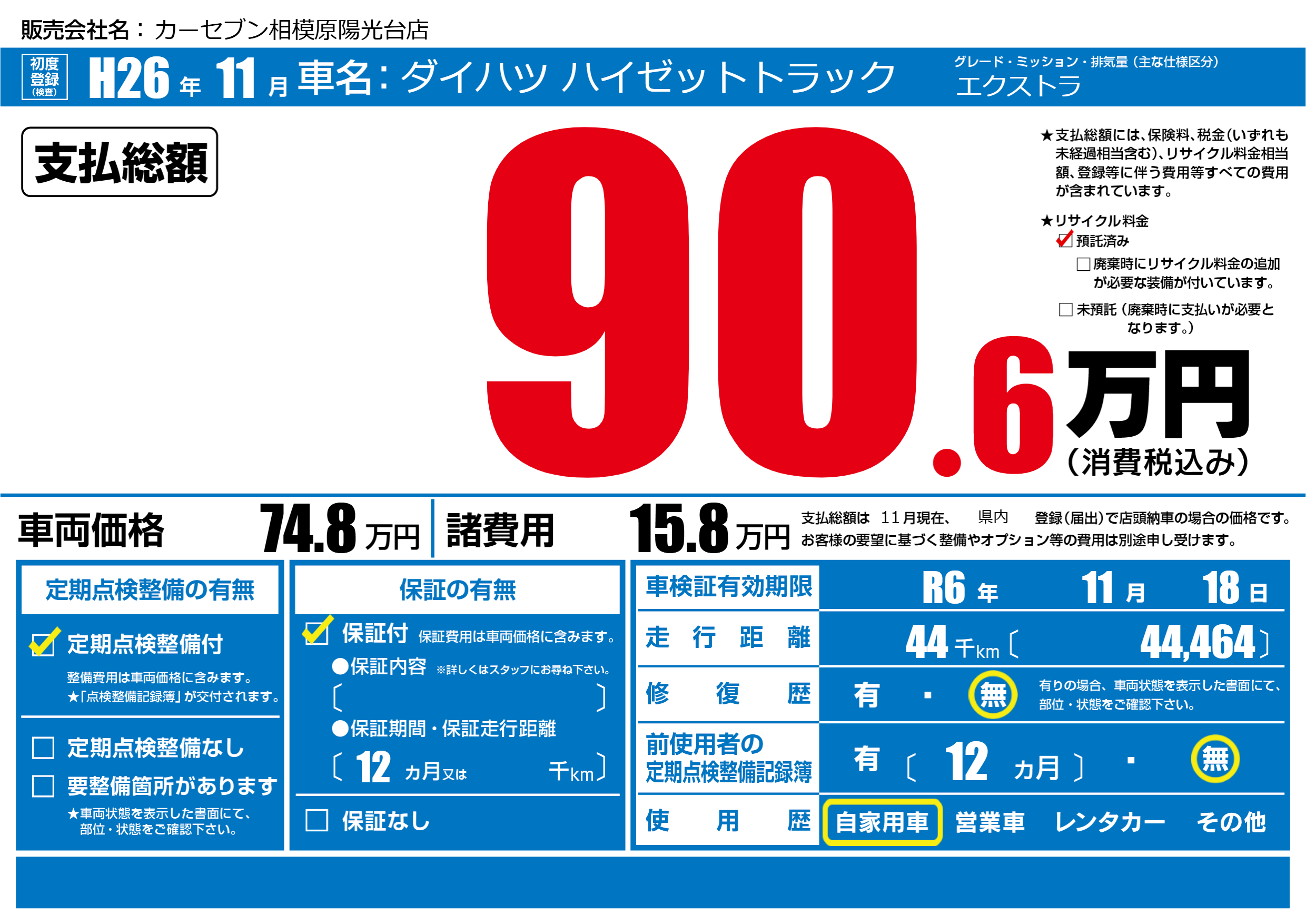 なし | 車検制限 | R6年11月18月 |