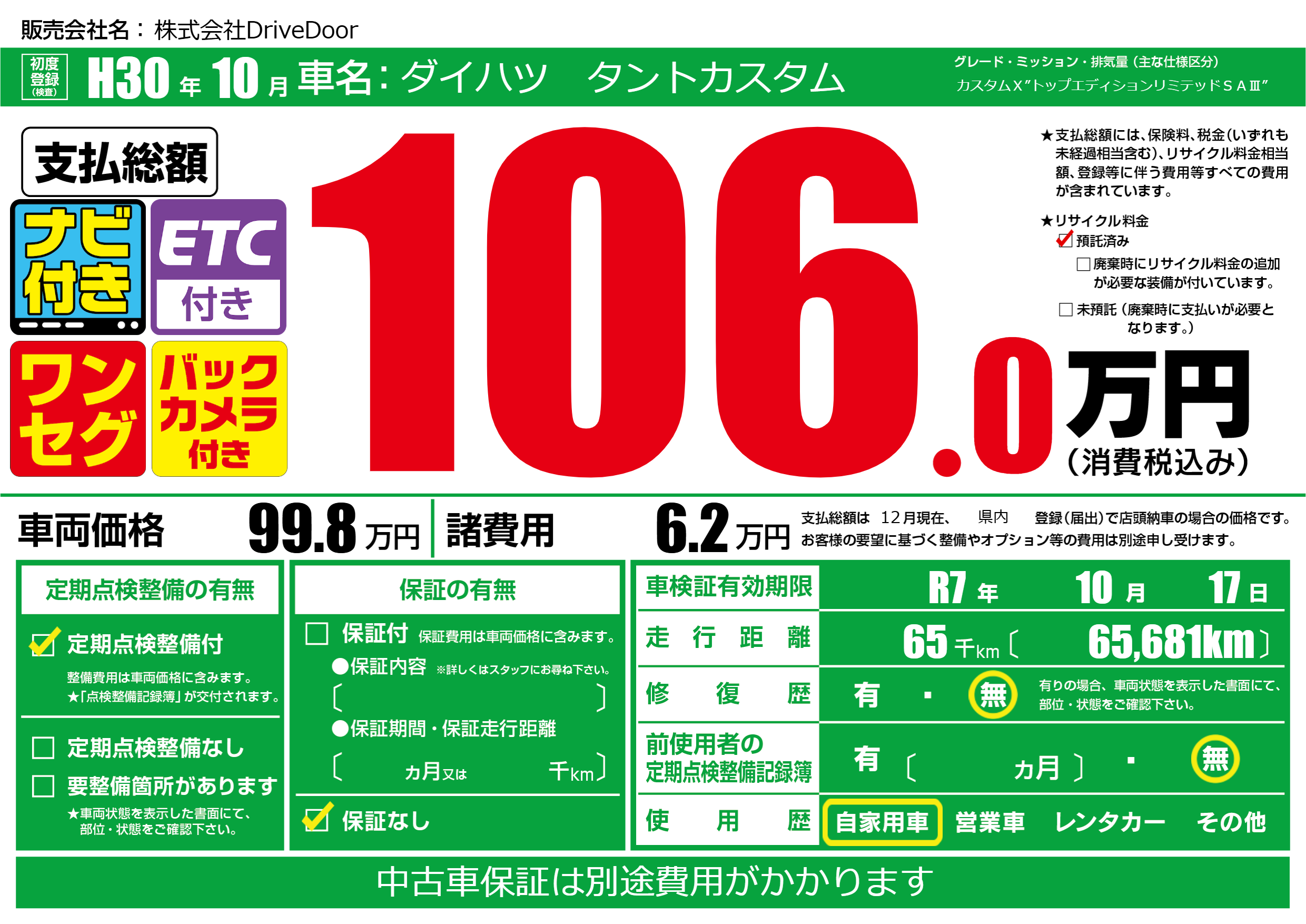 なし | 車検制限 | R7年10月17月 |