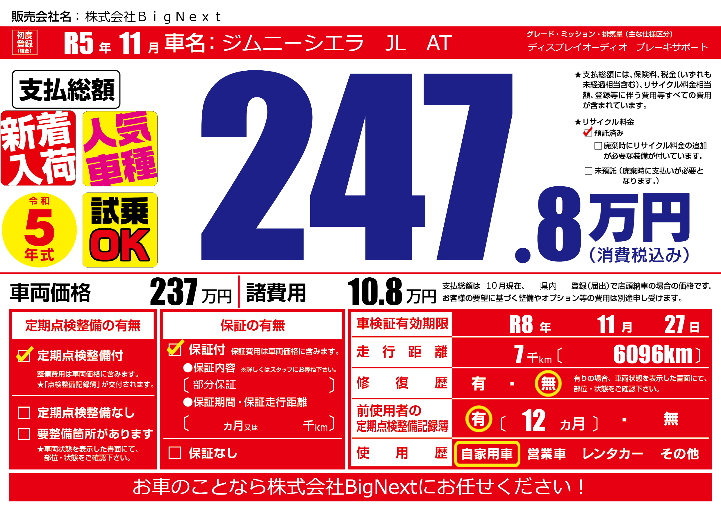 なし | 車検制限 | R8年11月27月 |
