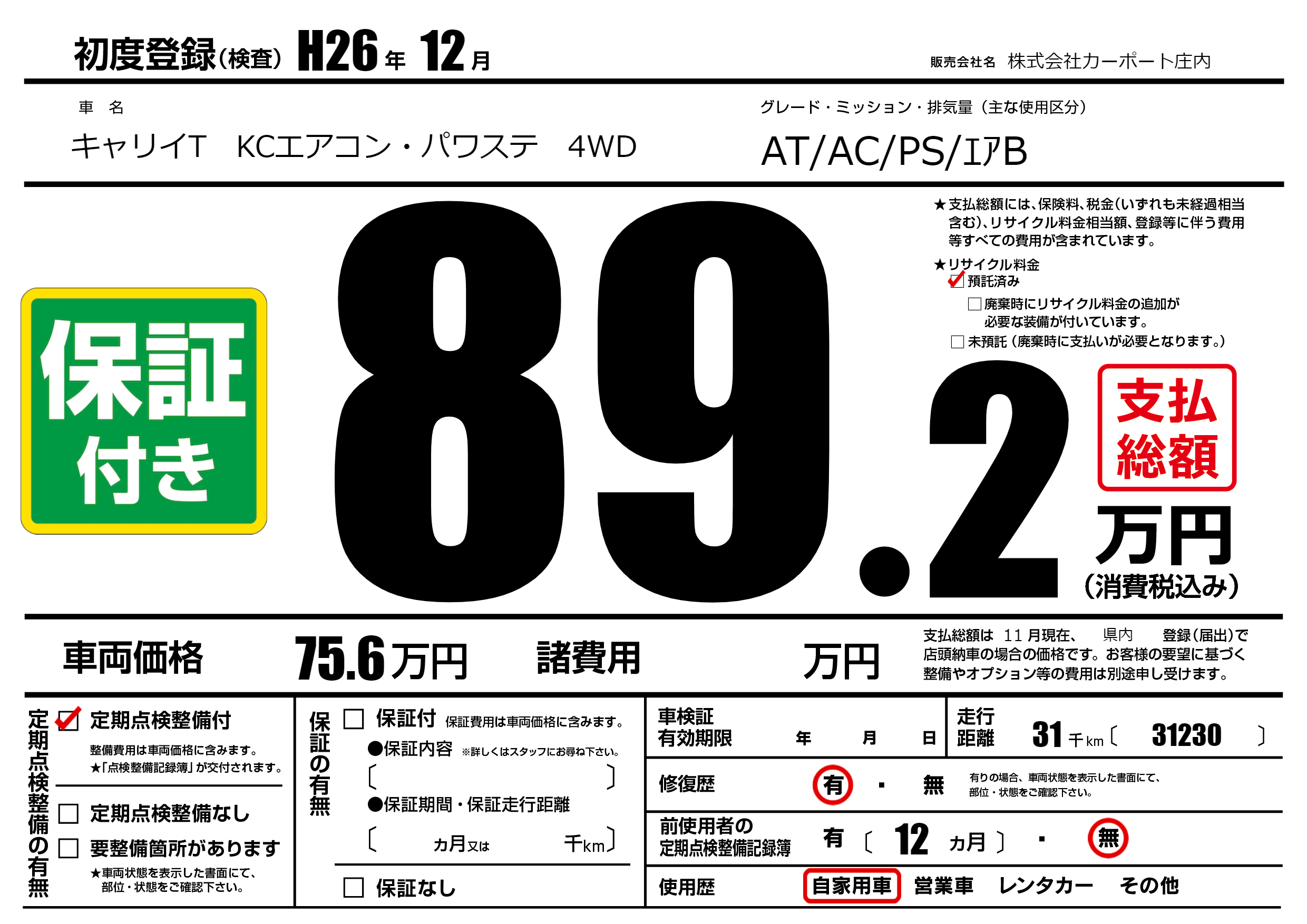 定期点検整備 | 定期点検整備あり |