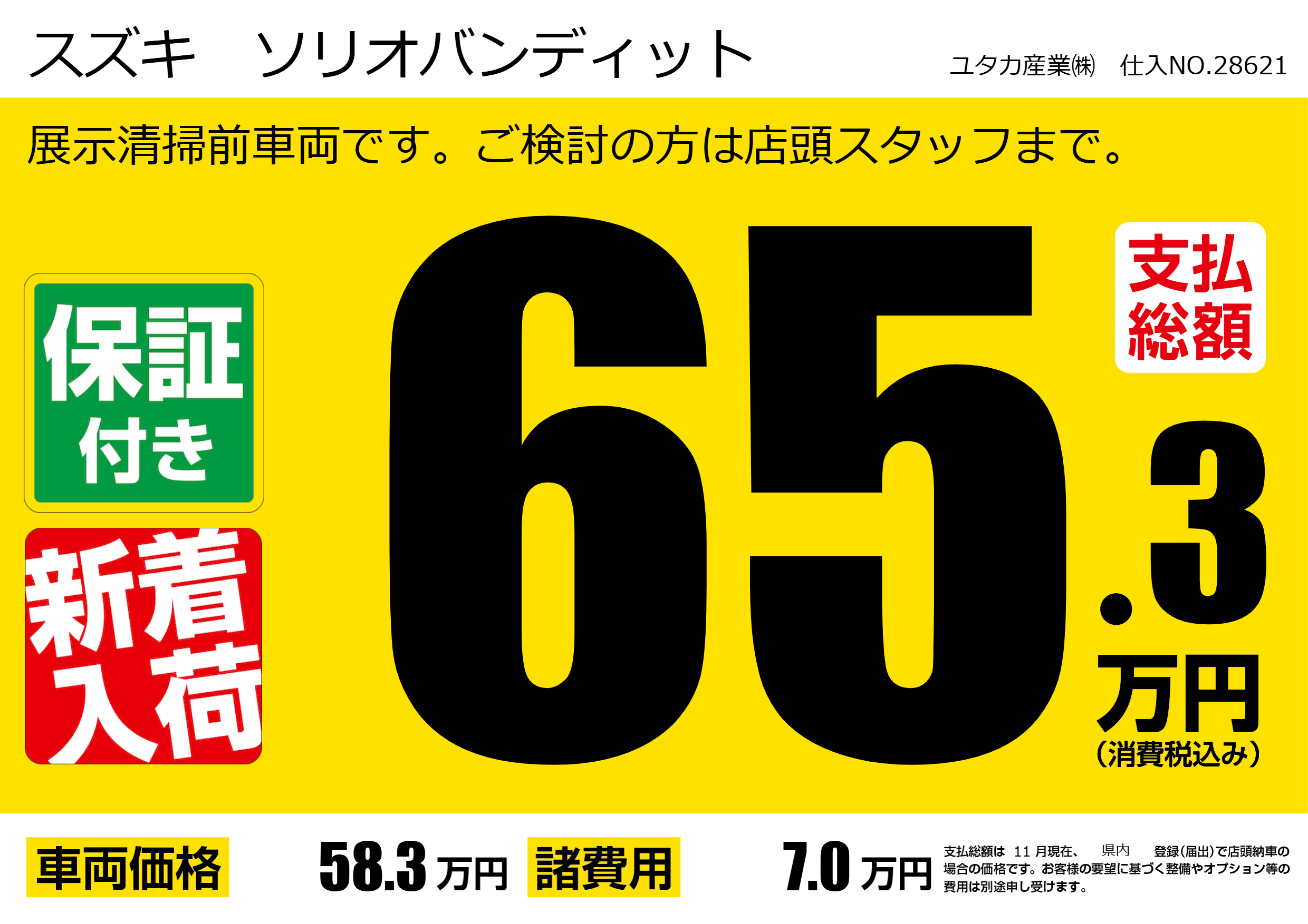 展示清掃前車両です。ご検討の方は店頭スタッフまで。 |