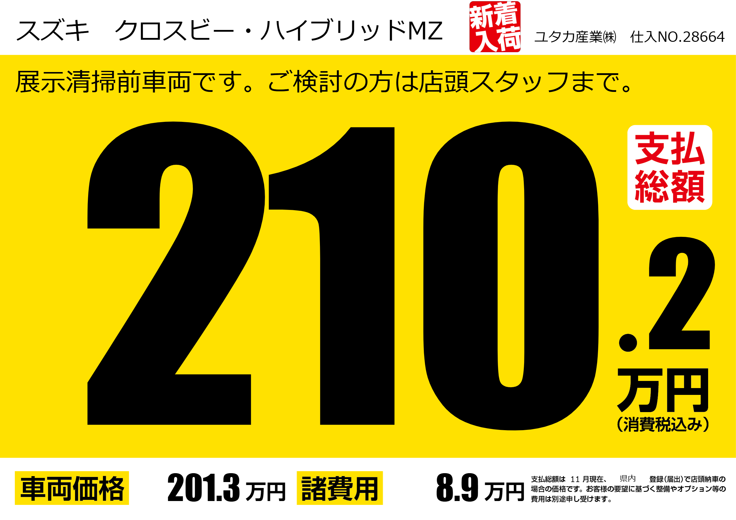 展示清掃前車両です。ご検討の方は店頭スタッフまで。 |