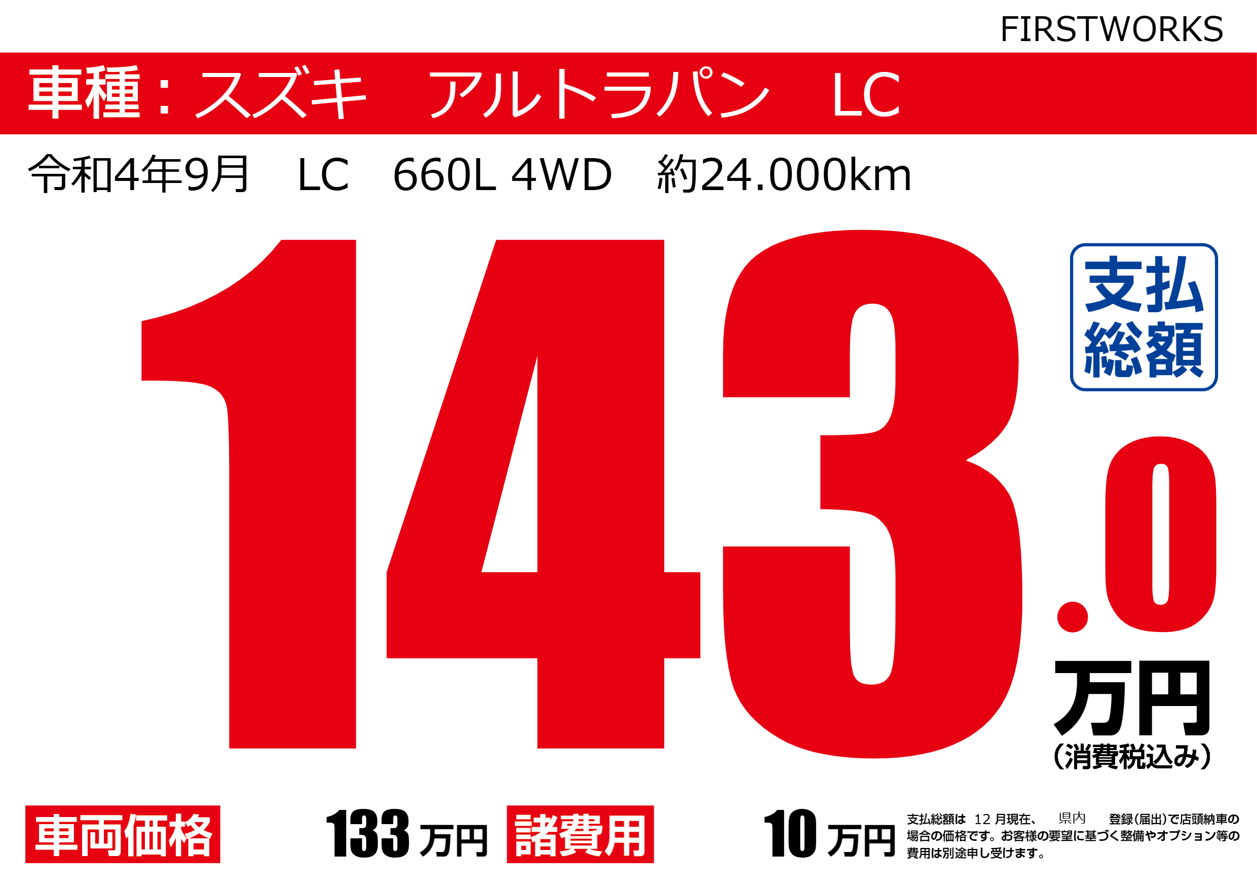 令和4年9月 LC 660L 4WD 約24.000km |