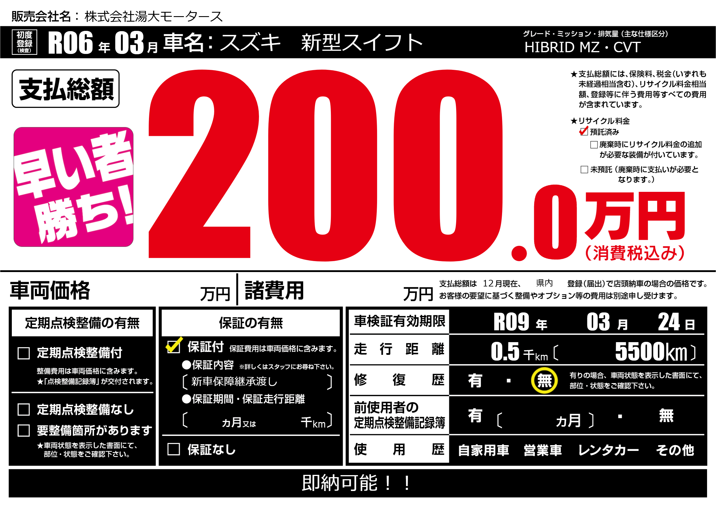 | 走行キロ | - | 初年度登録 | R06年03月 |