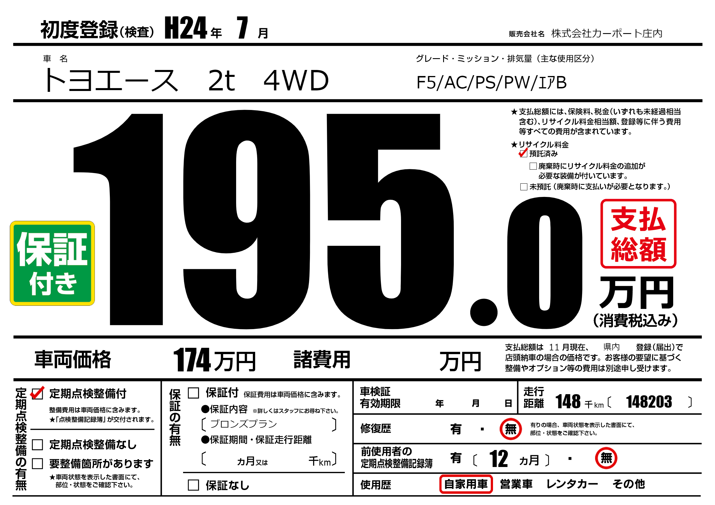 | 定期点検整備 | 定期点検整備あり | ||