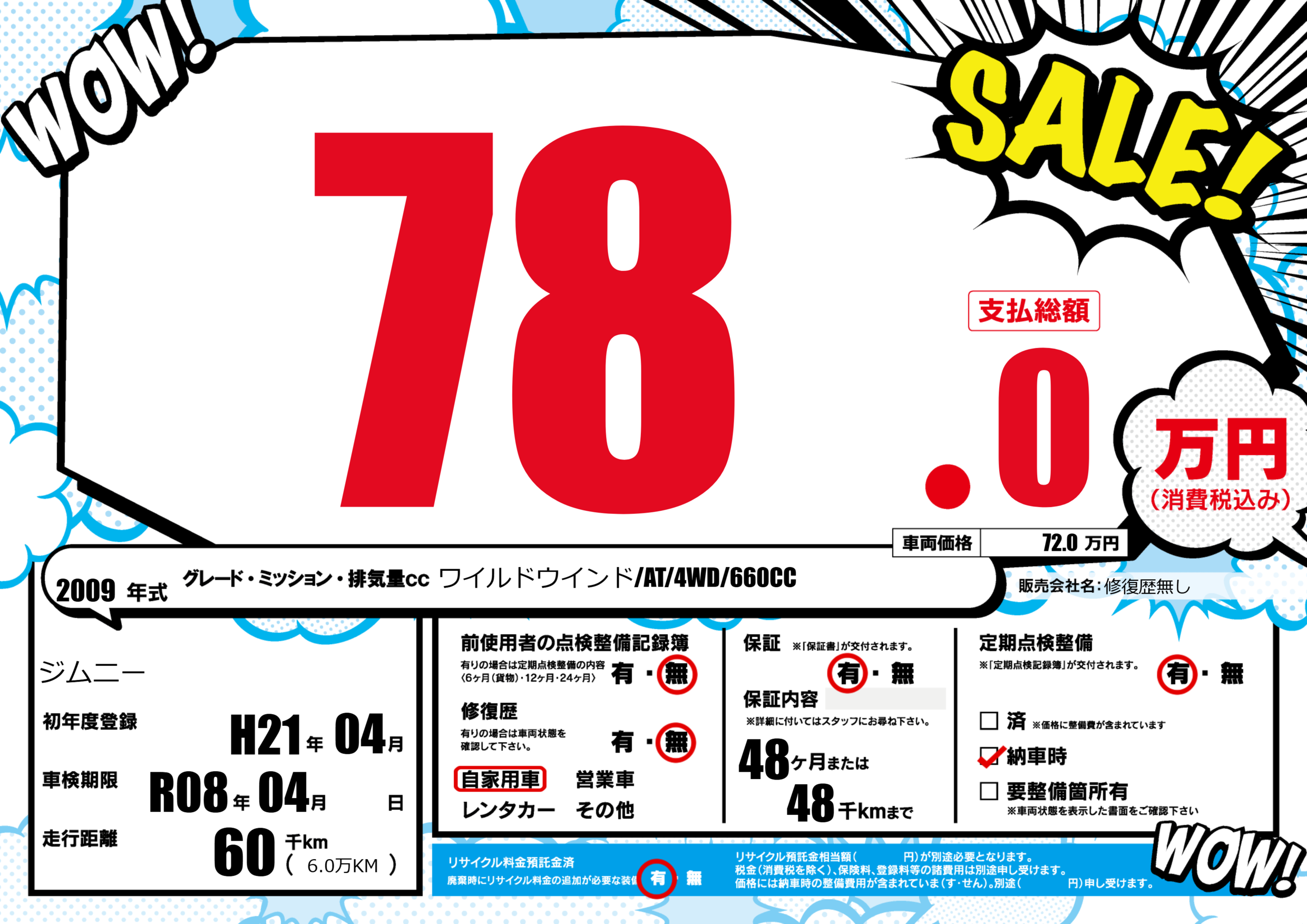 保証付き 保証内容(---) 48ヶ月または(48)千kmまで |
