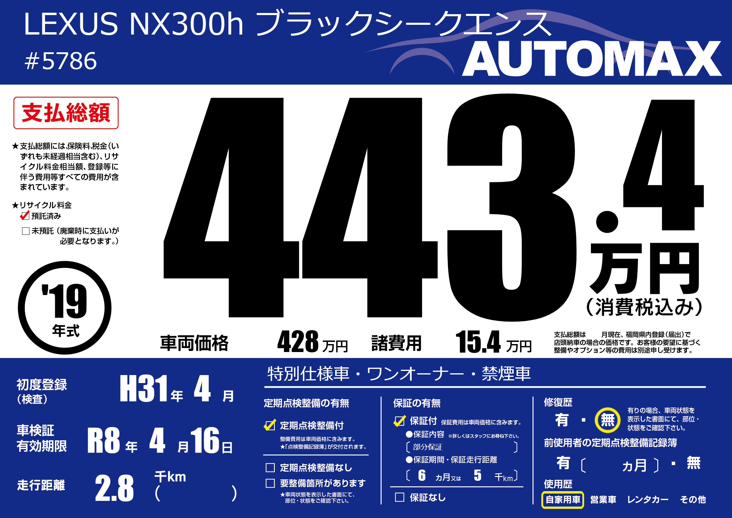 | 車名 | LEXUS NX300h ブラックシークエンス | グレード ミッション 排気量 |