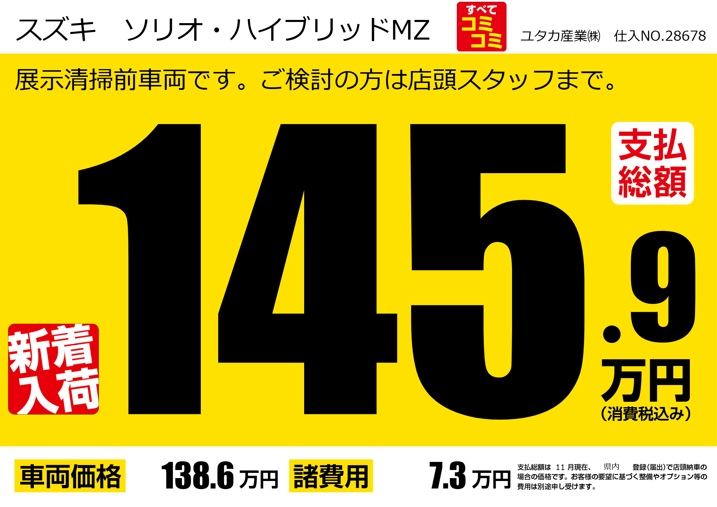 展示清掃前車両です。ご検討の方は店頭スタッフまで。 |
