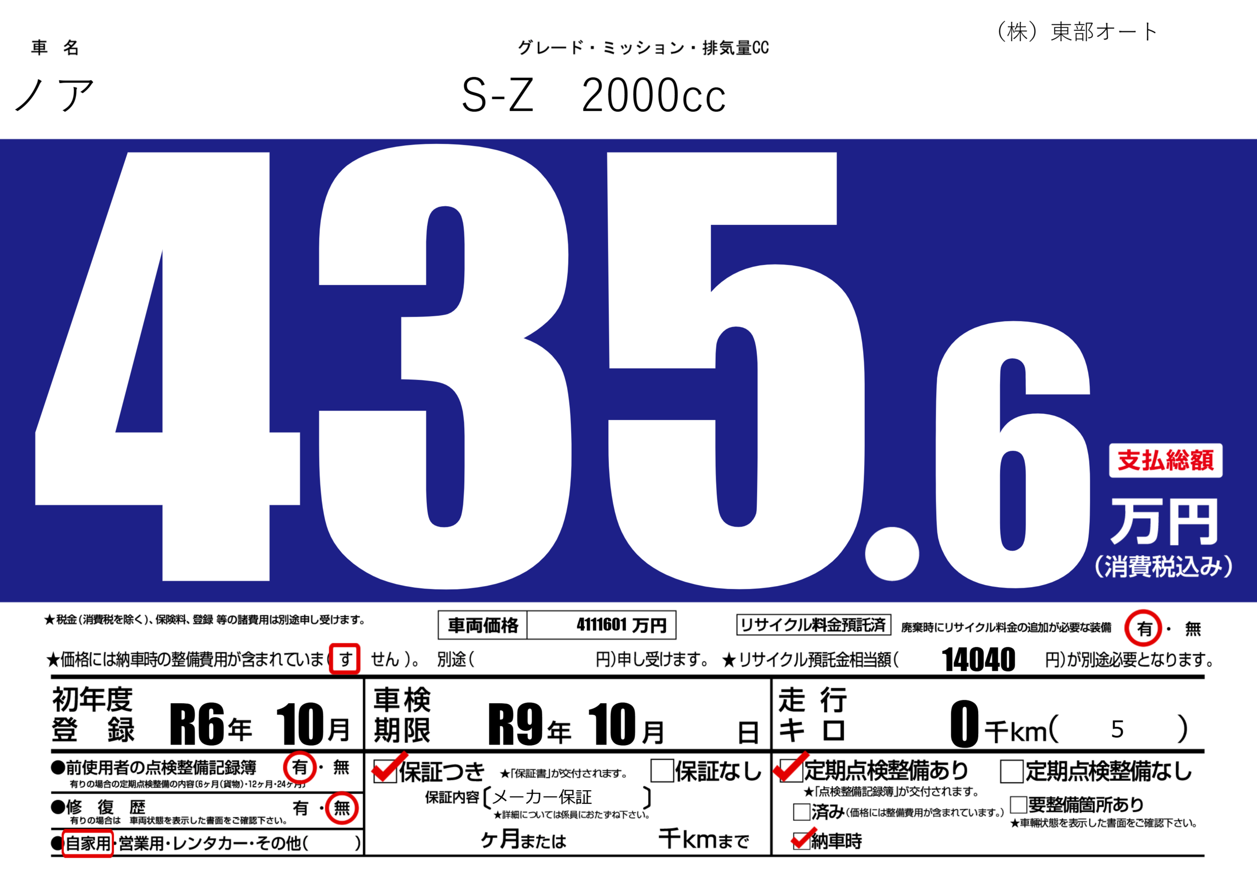 | 定期点検整備 | 定期点検整備あり 納車時あり | ||