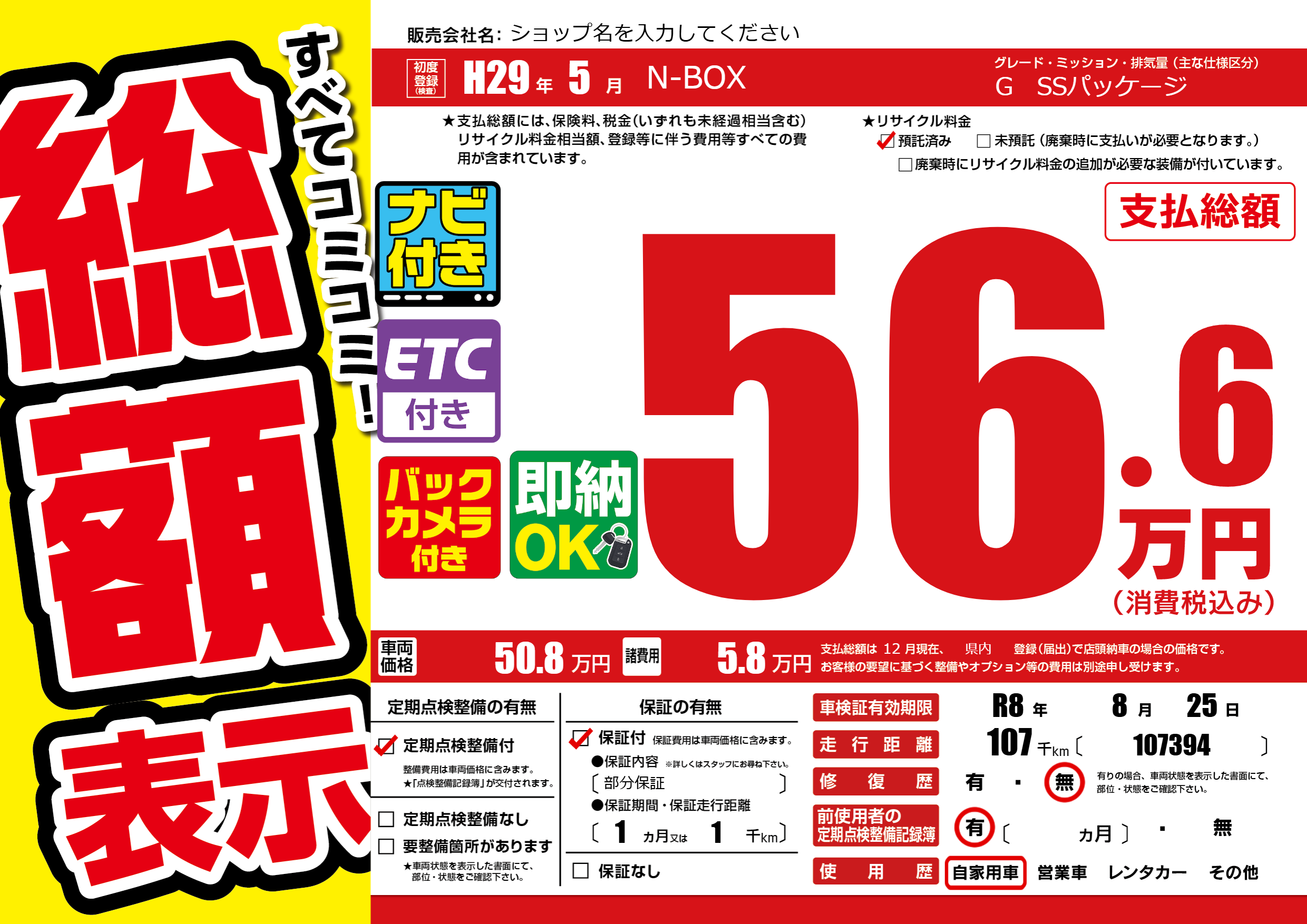 | 車名 | N-BOX | グレード ミッション 排気量 |